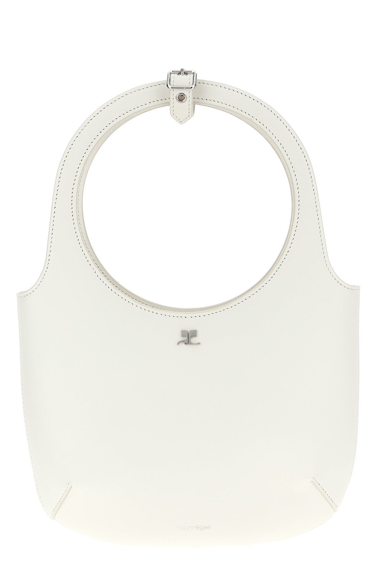 Sac à main en cuir Holy avec logo métallique sur le devant, double poignée fixe avec détail de bandoulière, fermeture magnétique, bandoulière réglable et amovible.
