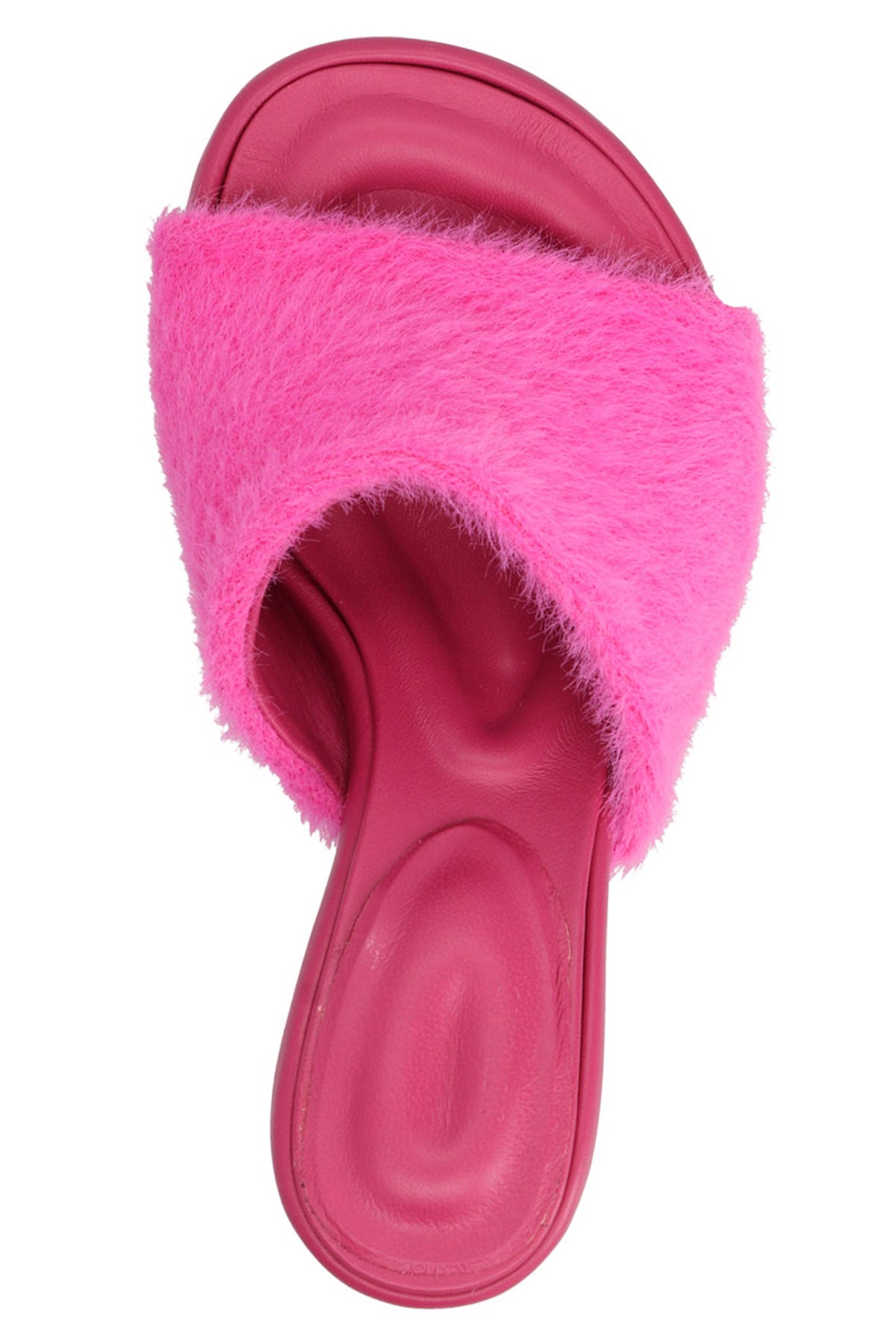 Mules en cuir nubuck Clay avec tige en maille, bout pointu. Logo carré, logo en relief sur la semelle et semelle en cuir.
