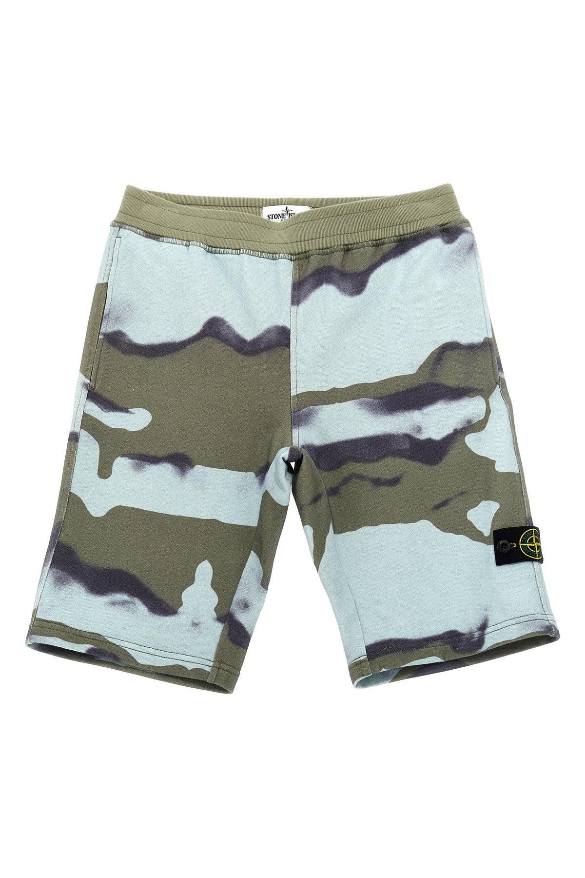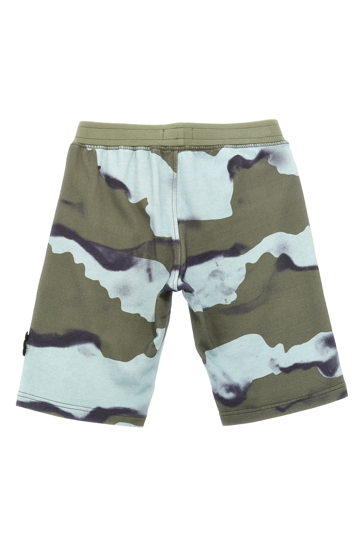 Short bermuda en gaze de coton à motifs, logo sur le côté, taille élastique ajustable avec cordon de serrage, poches.