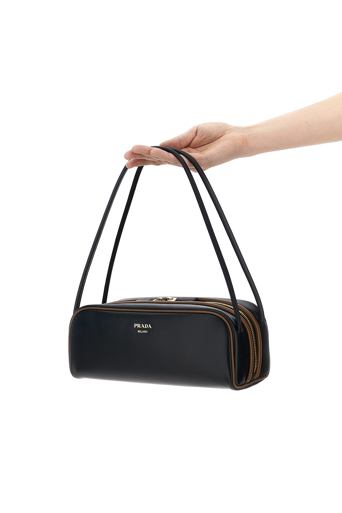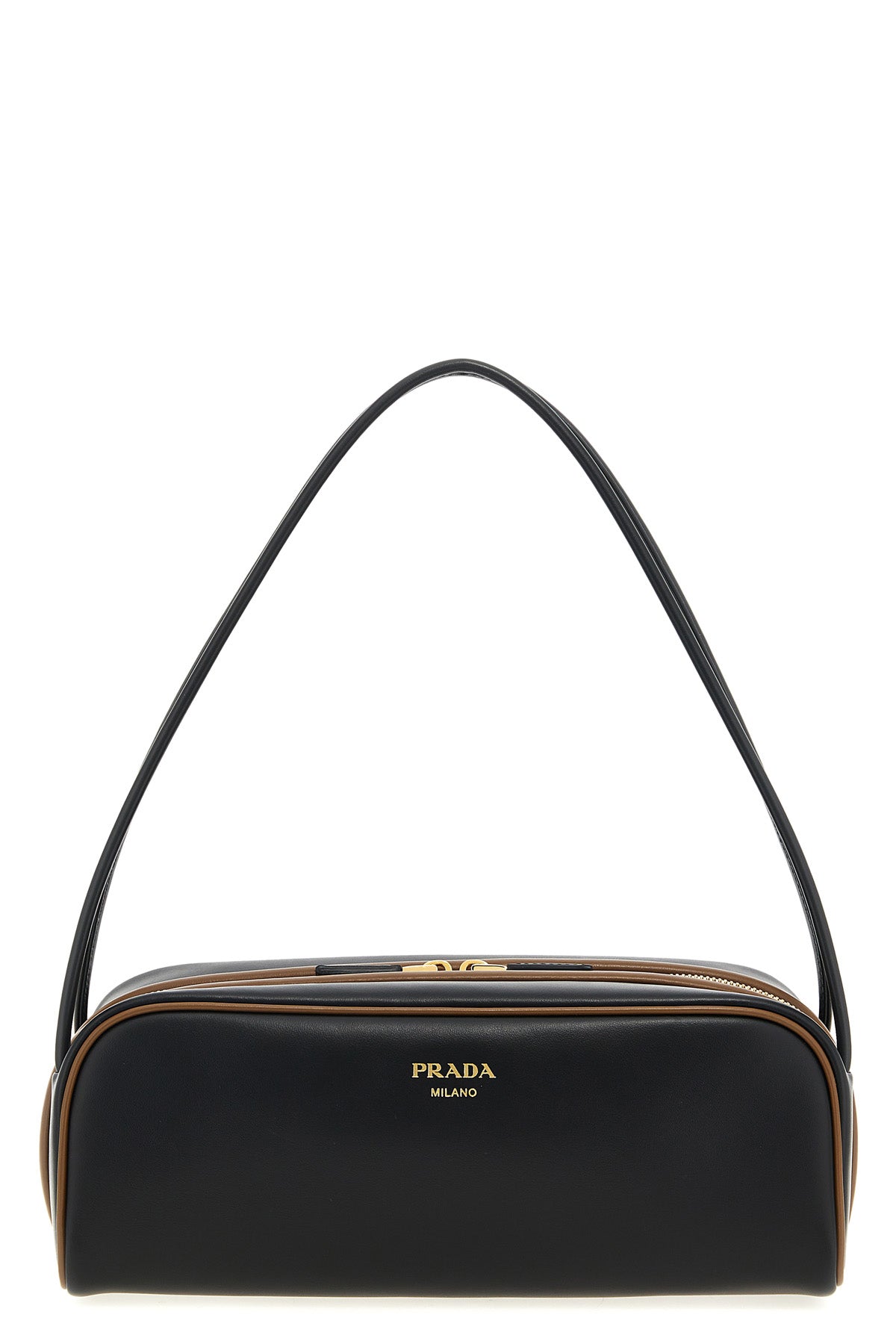 Sac bandoulière Prada Swing en nappa avec logo embossé sur le devant, fermeture zippée sur le dessus et double poignée fixe.