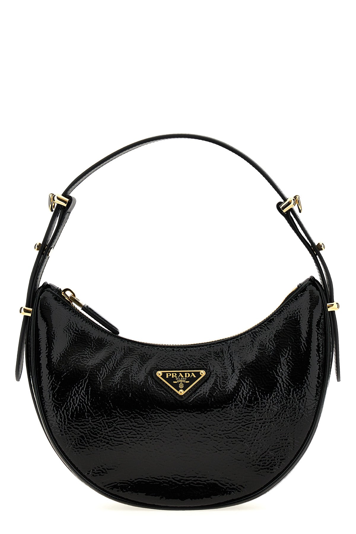 Sac bandoulière Prada Arqué' Naplak en cuir verni, fermeture zippée, logo triangulaire en métal émaillé sur le devant, poignée réglable et amovible, bandoulière réglable et amovible.