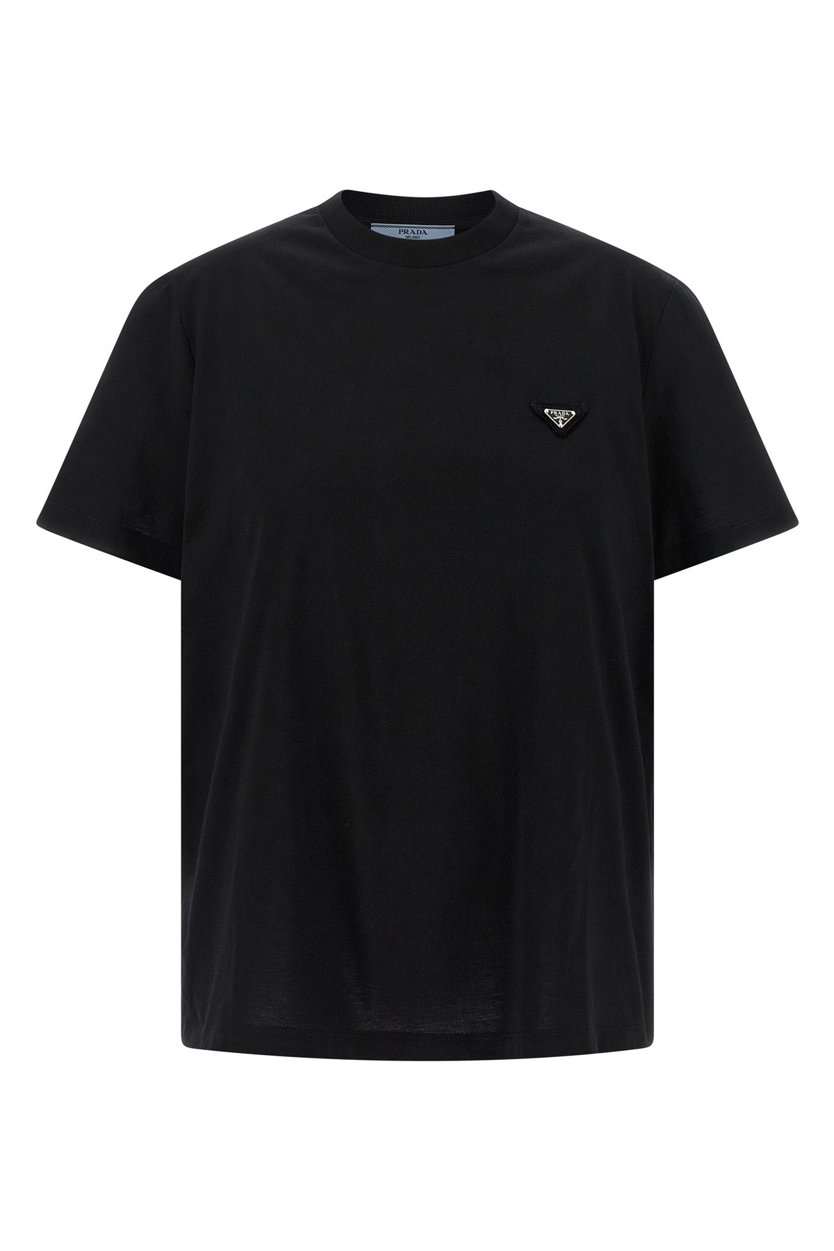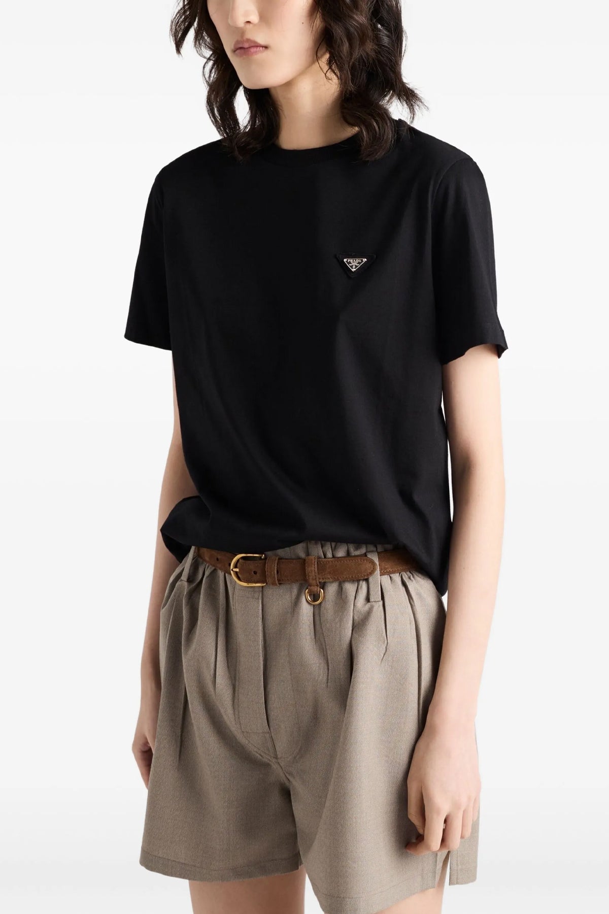 T-shirt en coton effet usé, logo triangulaire en métal émaillé sur le devant, col rond, manches courtes.