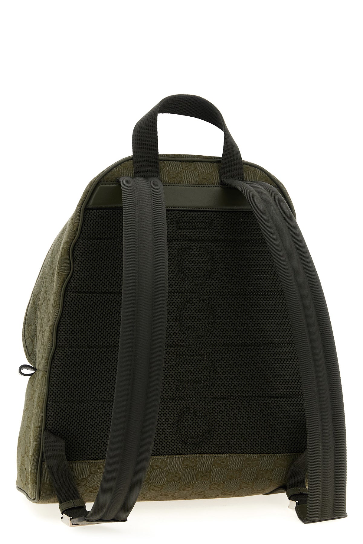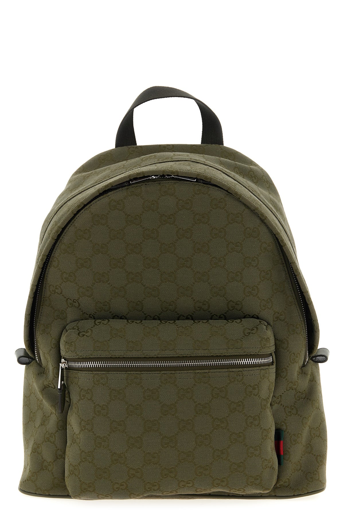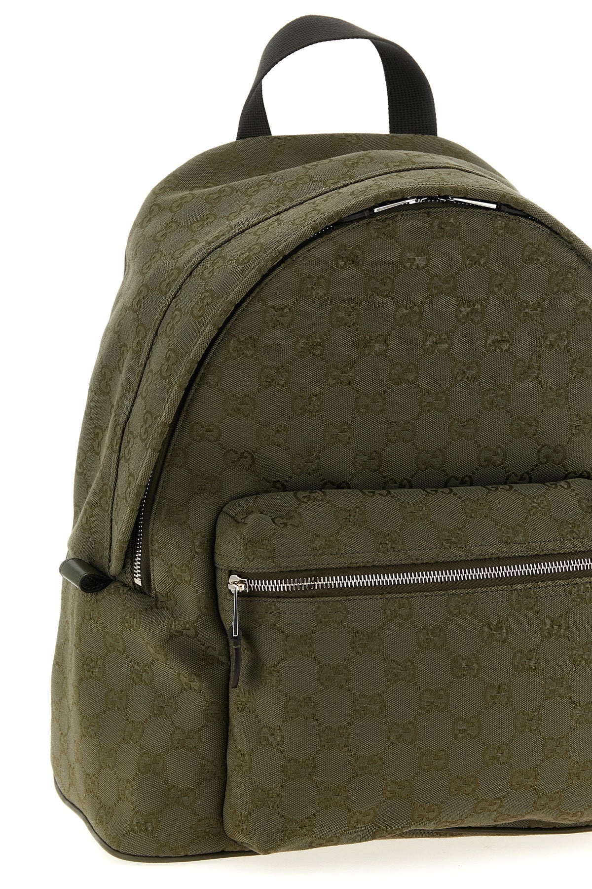 Sac à dos moyen en tissu Gg avec détails en cuir ton sur ton, poignée fixe, fermeture éclair sur le dessus, poche avant zippée et détail en ruban, bretelles réglables, dos rembourré en maille.
