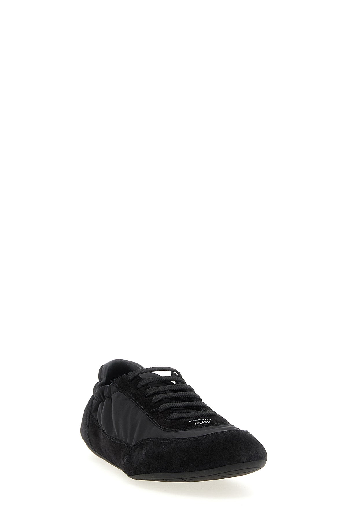 Baskets ' Collapse ' en daim avec empiècements en Re-Nylon, logo embossé sur le devant, bride élastique à la cheville, fermeture à lacets, semelle intérieure amovible en cuir, semelle extérieure en caoutchouc ultra-fine.