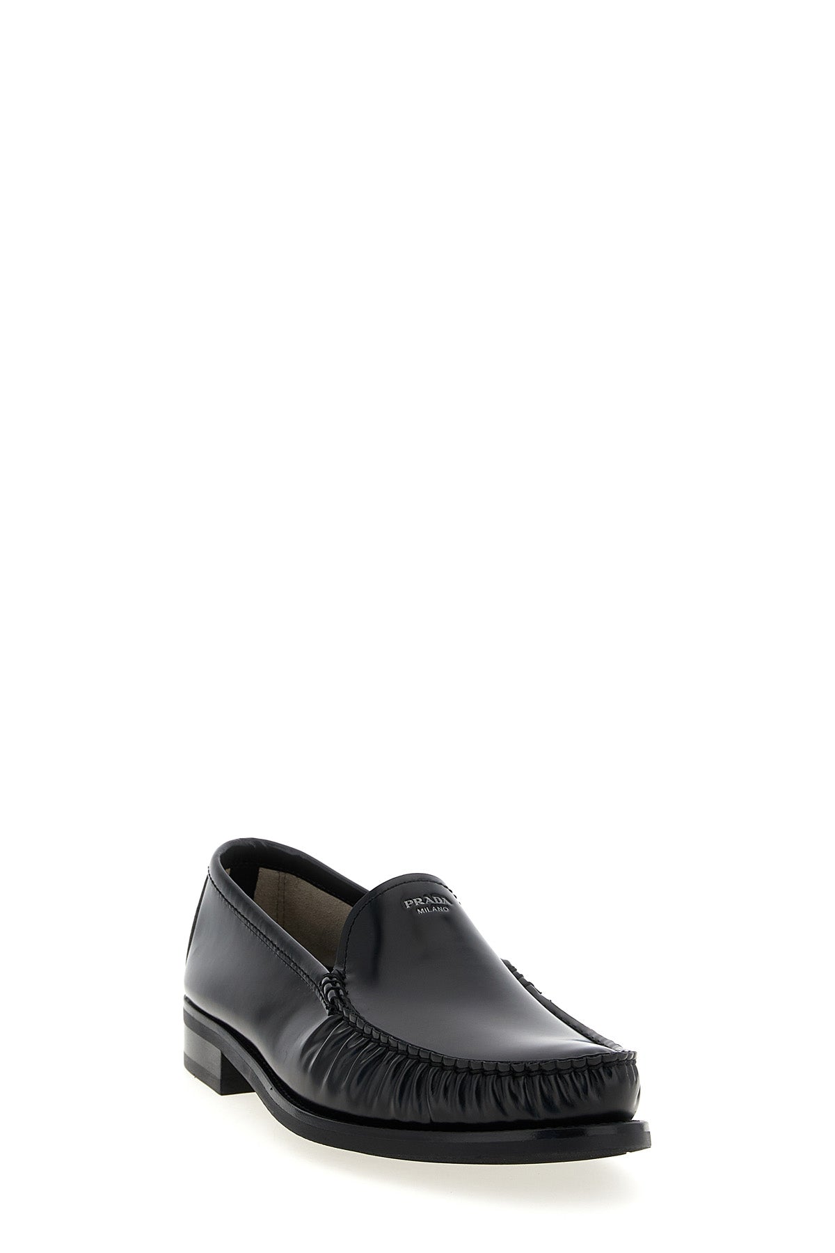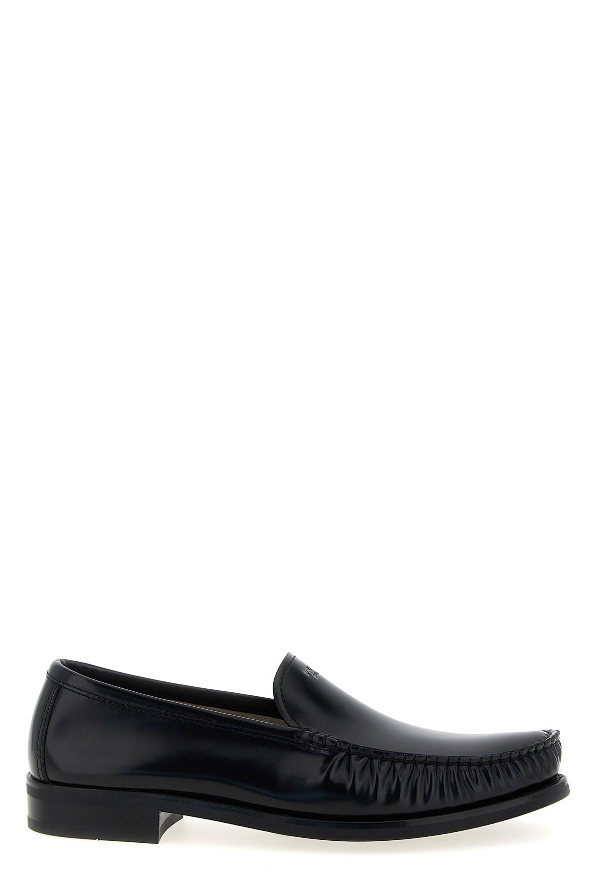 Mocassins en cuir brossé avec logo sérigraphié sur le devant, surpiqûres, semelle intérieure en cuir et semelle extérieure en caoutchouc.