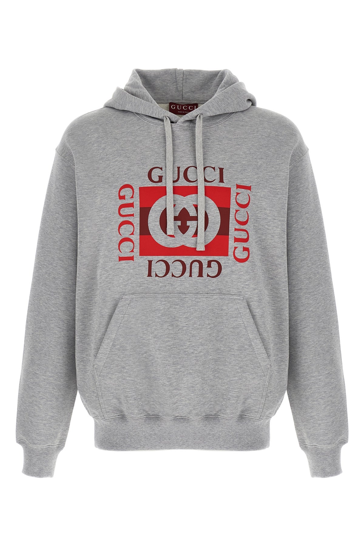 Sweat à capuche en jersey de coton mélangé avec imprimé ' Gucci Incrocio GG ' sur le devant, poche kangourou, manches longues à revers et épaules tombantes.