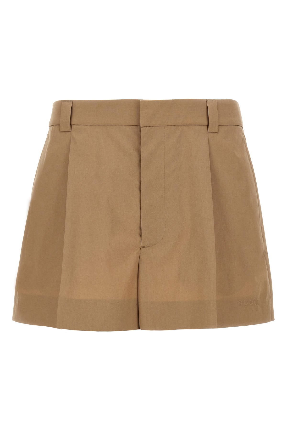 Short en popeline de coton, pliure avant, logo en relief, fermeture éclair à crochet et bouton sur le devant, poches.