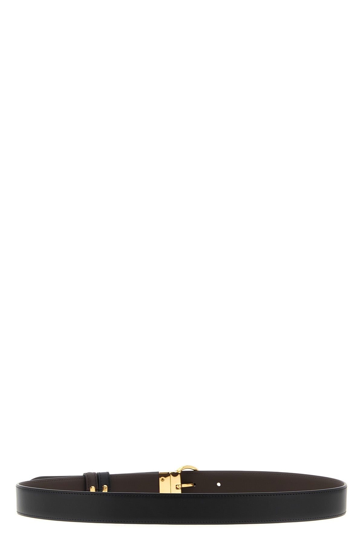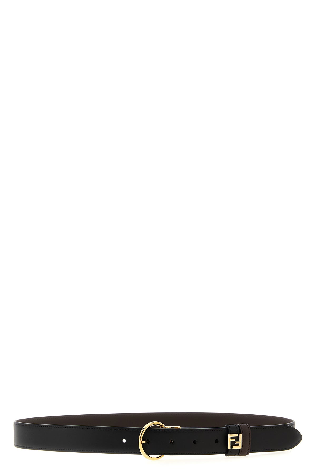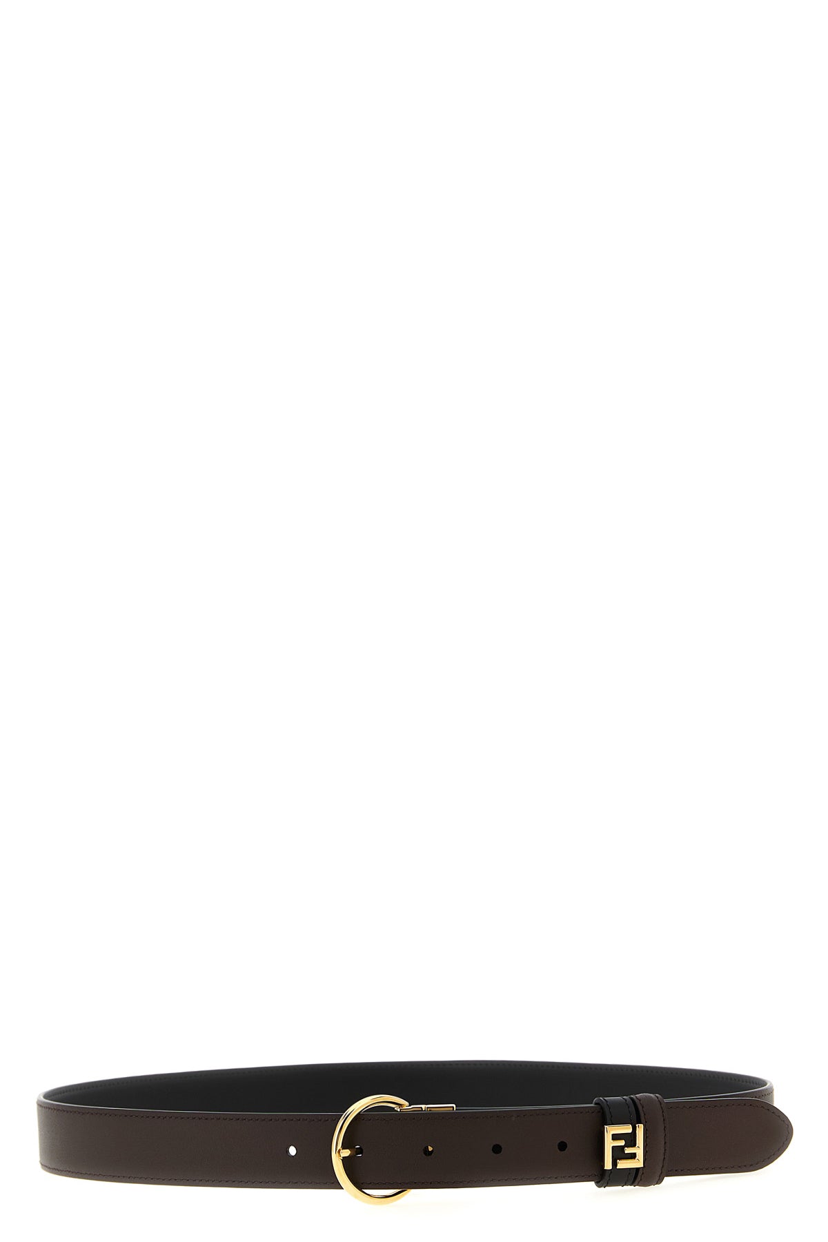 Ceinture réversible en cuir lisse, logo FF métallique, boucle double et ardillon.