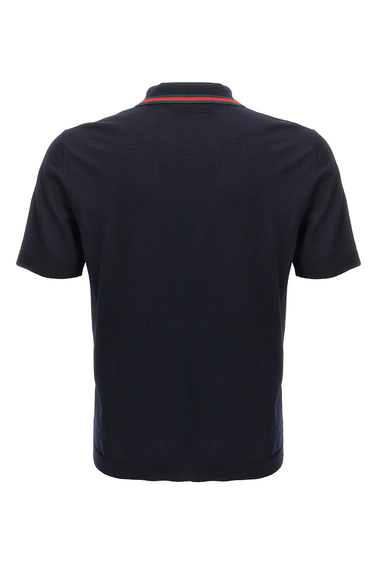 Polo en laine fine tricotée, col orné d'un ruban et de boutons, manches courtes.
