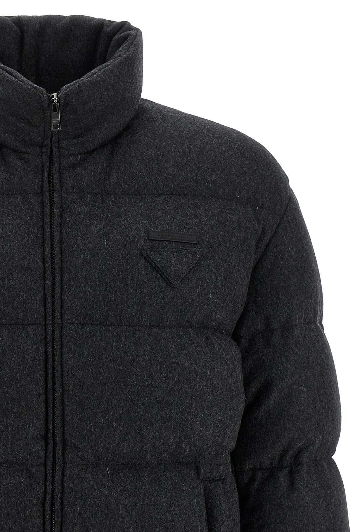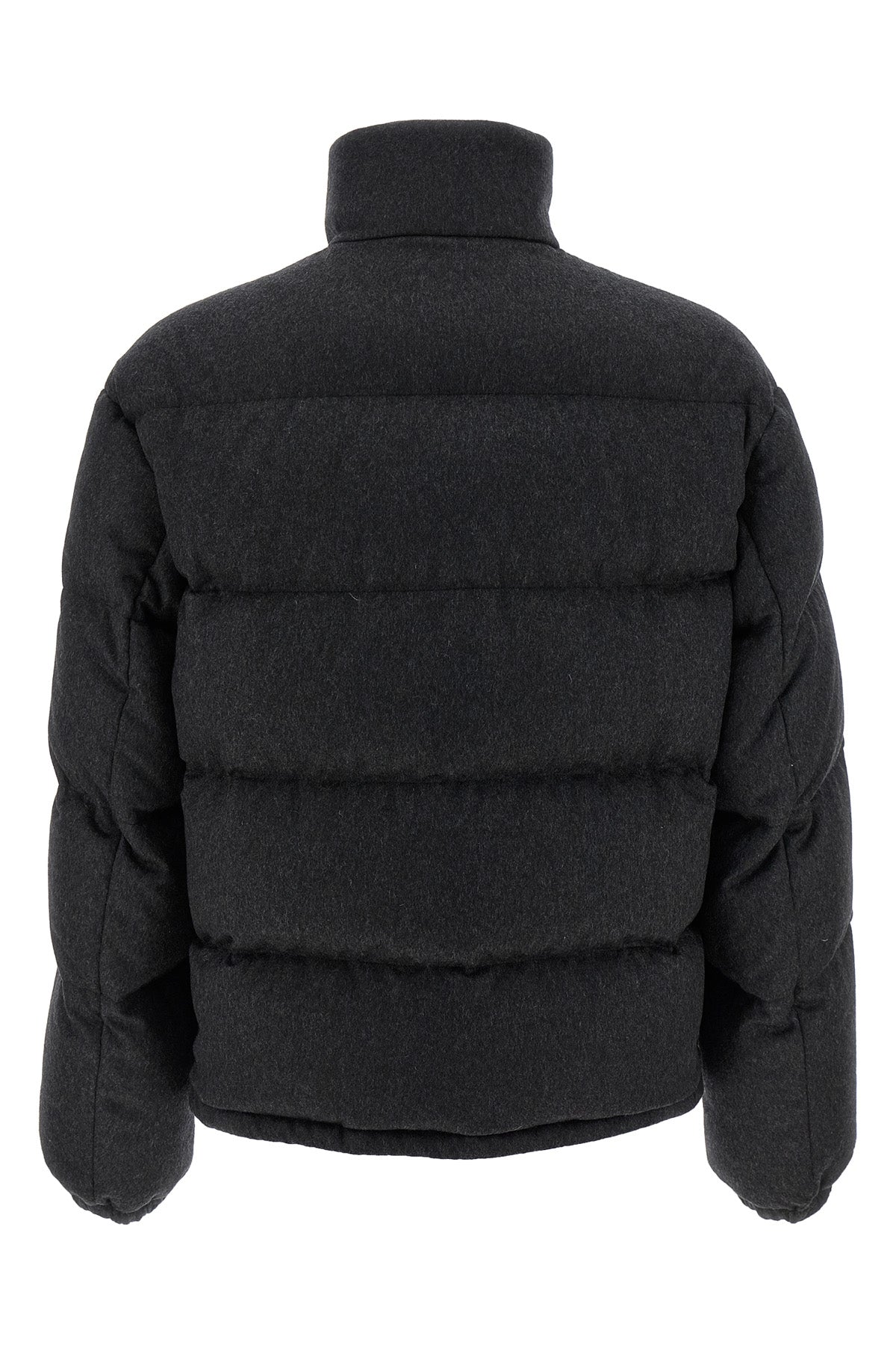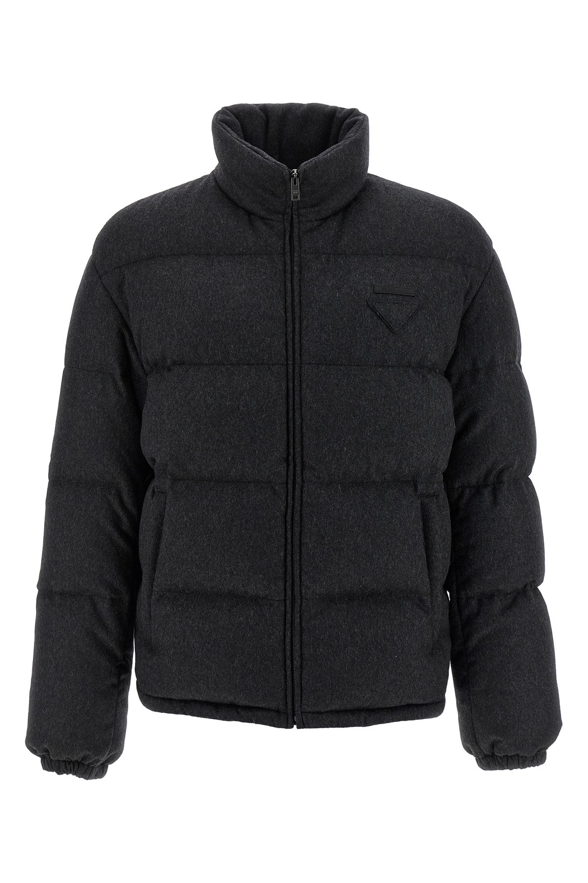 Doudoune matelassée en cachemire mélangé avec rembourrage en plumes d'oie, logo triangulaire ton sur ton, fermeture éclair sur le devant, col montant, poches, manches longues avec poignets élastiques, cordon de serrage à l'ourlet.