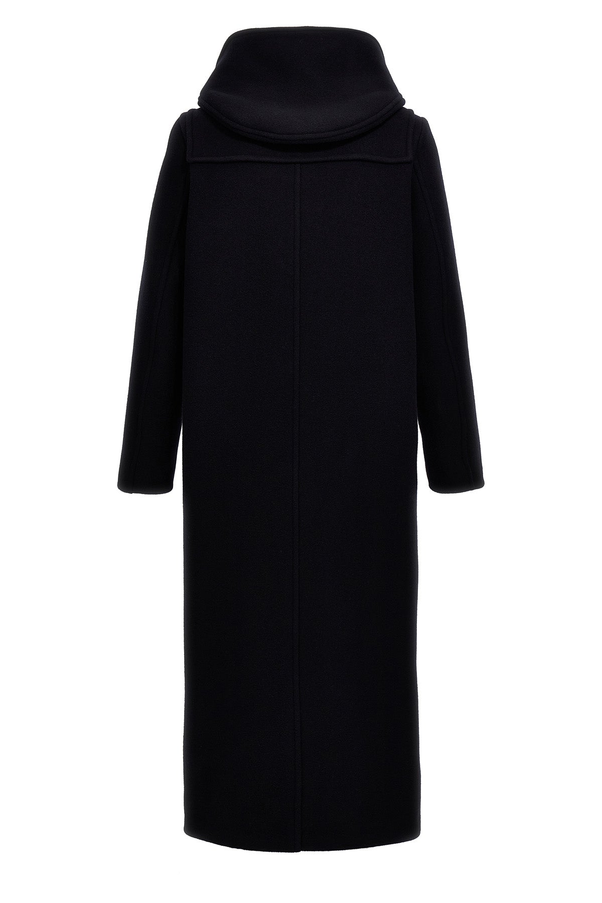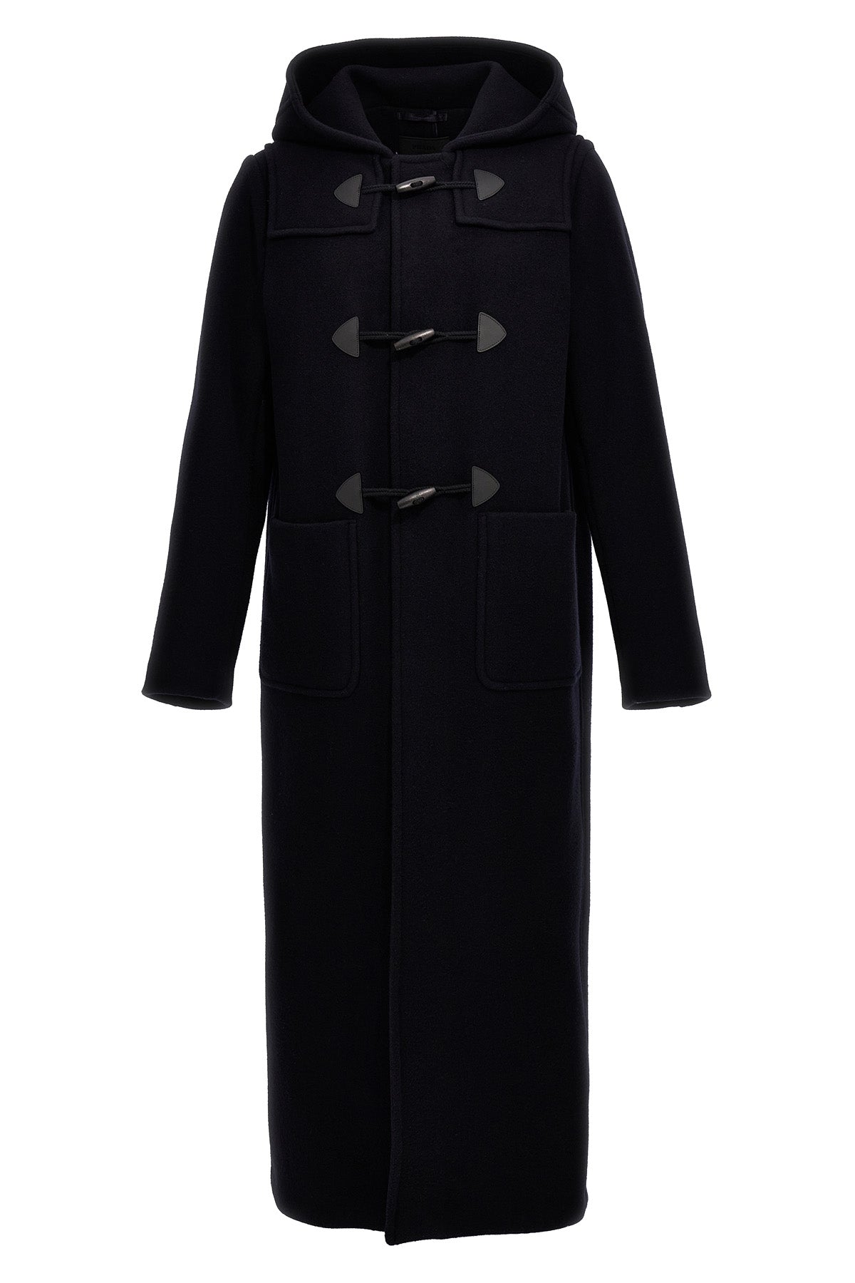 Manteau long en laine Montgomery avec fermeture à boutons et brandebourgs, capuche, poches, non doublé.