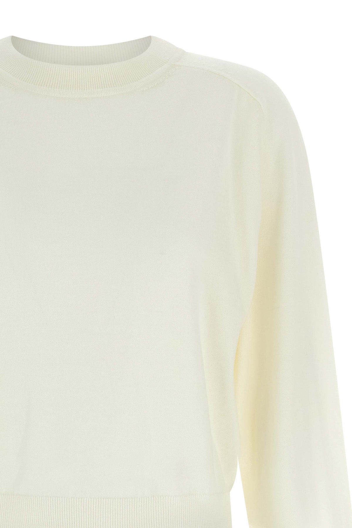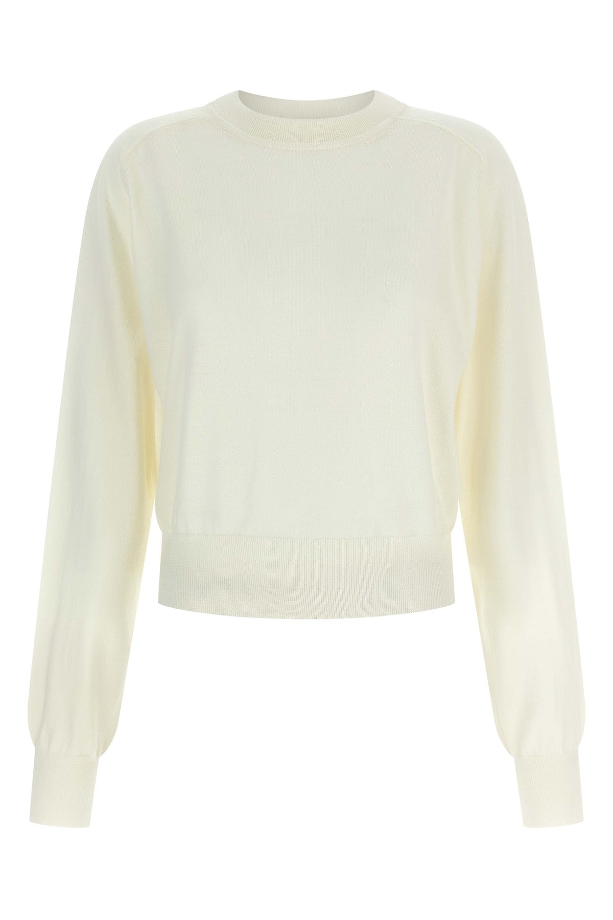 Pull en laine mérinos ' Le Sweater Brodé ' avec broderie logo ton sur ton au dos, col rond, manches longues à poignets et épaules tombantes.