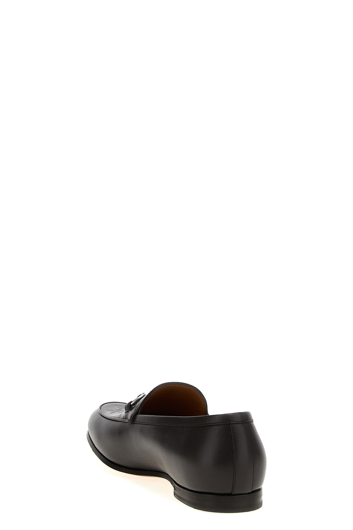 Mocassins en cuir, monogramme Gg en relief sur le devant avec inscription ' Morsetto ' en métal, semelle en cuir.