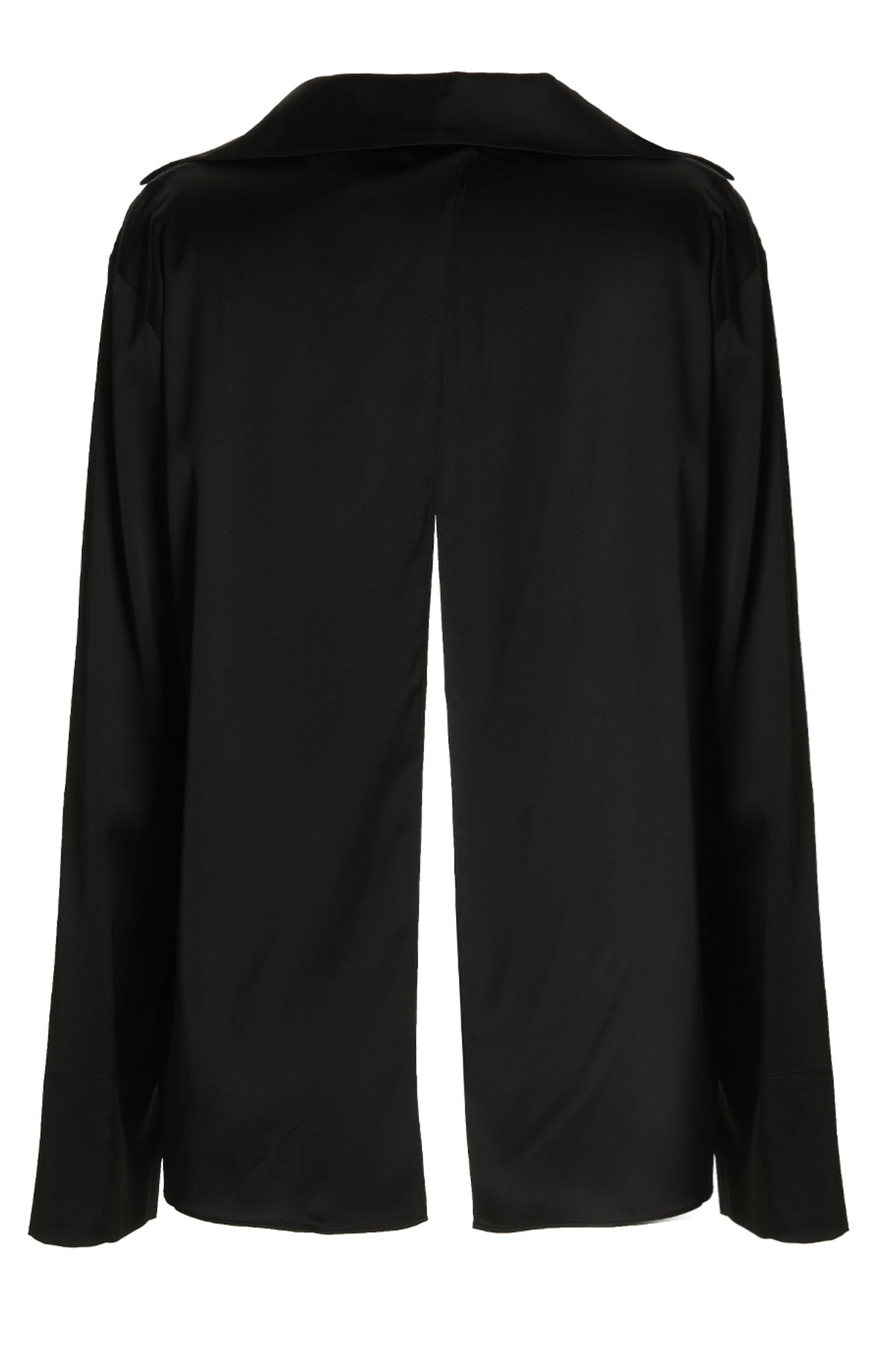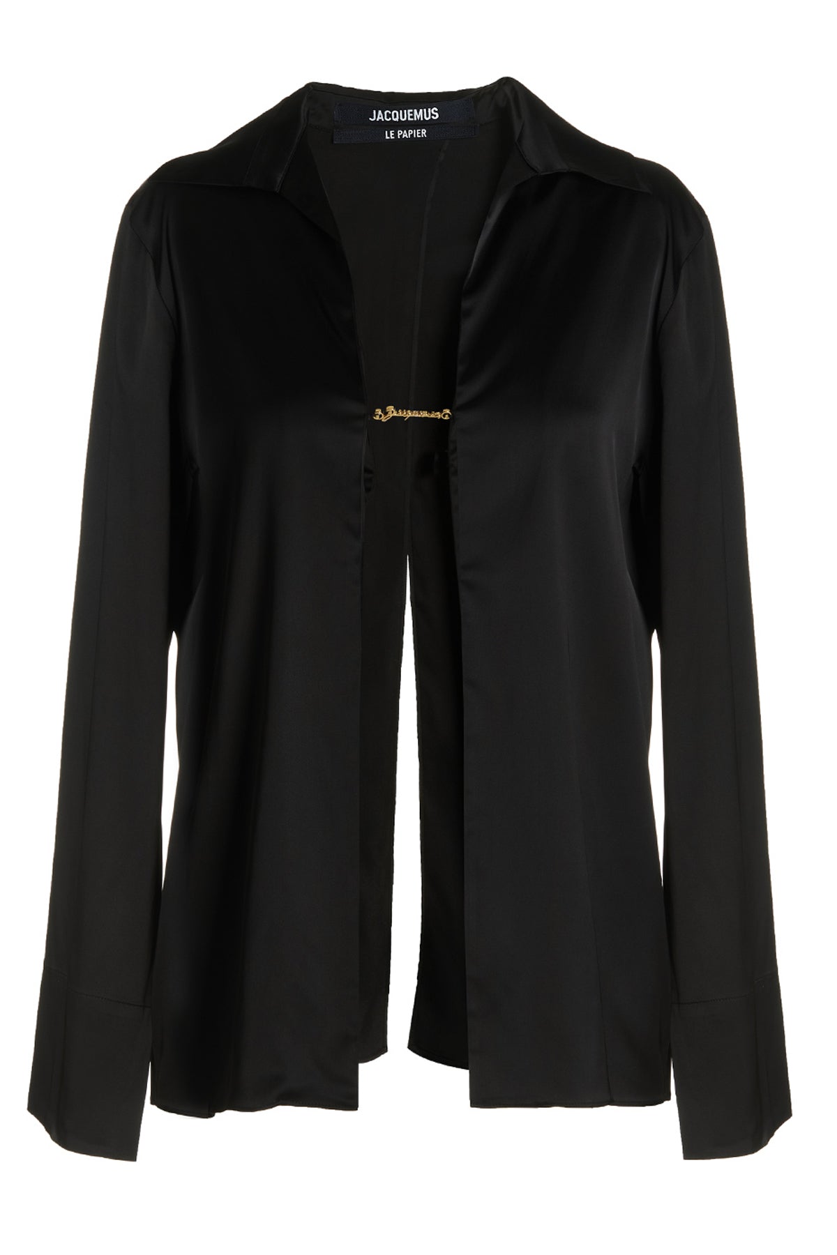Chemise de nuit en satin avec breloque logo en métal sur le devant, col pointu, fente au dos, manches longues.