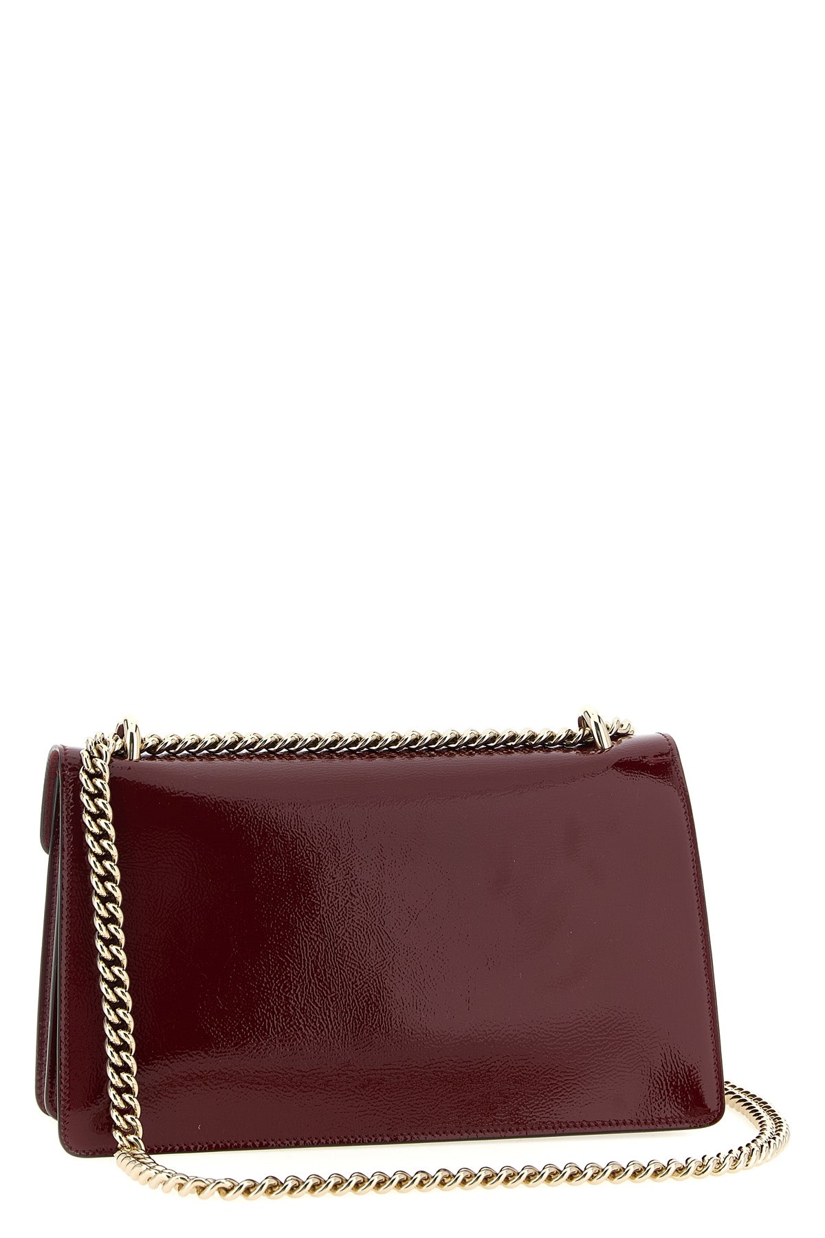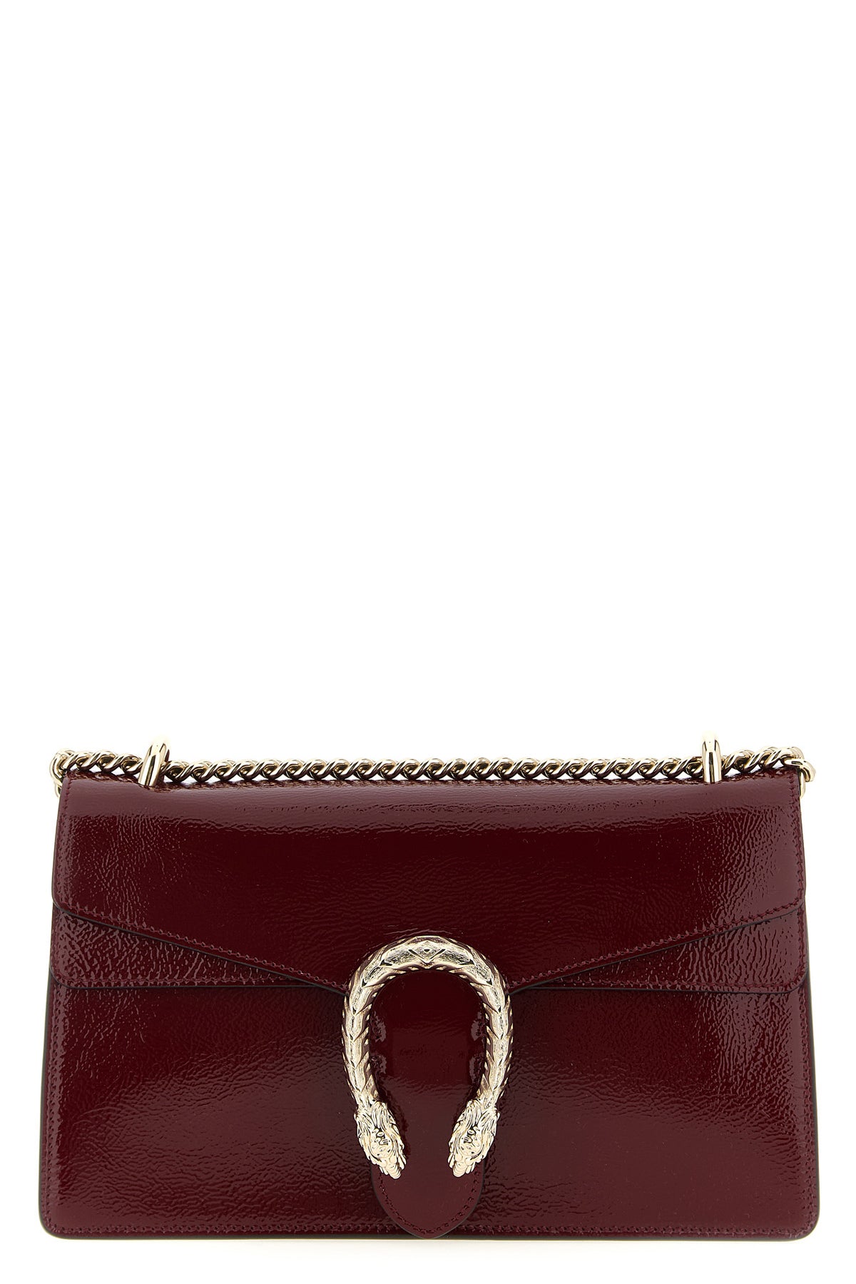 Sac bandoulière moyen Gucci Rosso Ancora ' Dionysus ' en cuir verni avec doublure en microfibre, fermeture à rabat avec mécanisme d'entrelacement et détail tête de tigre en métal sur le devant, double soufflet, bandoulière chaîne coulissante.