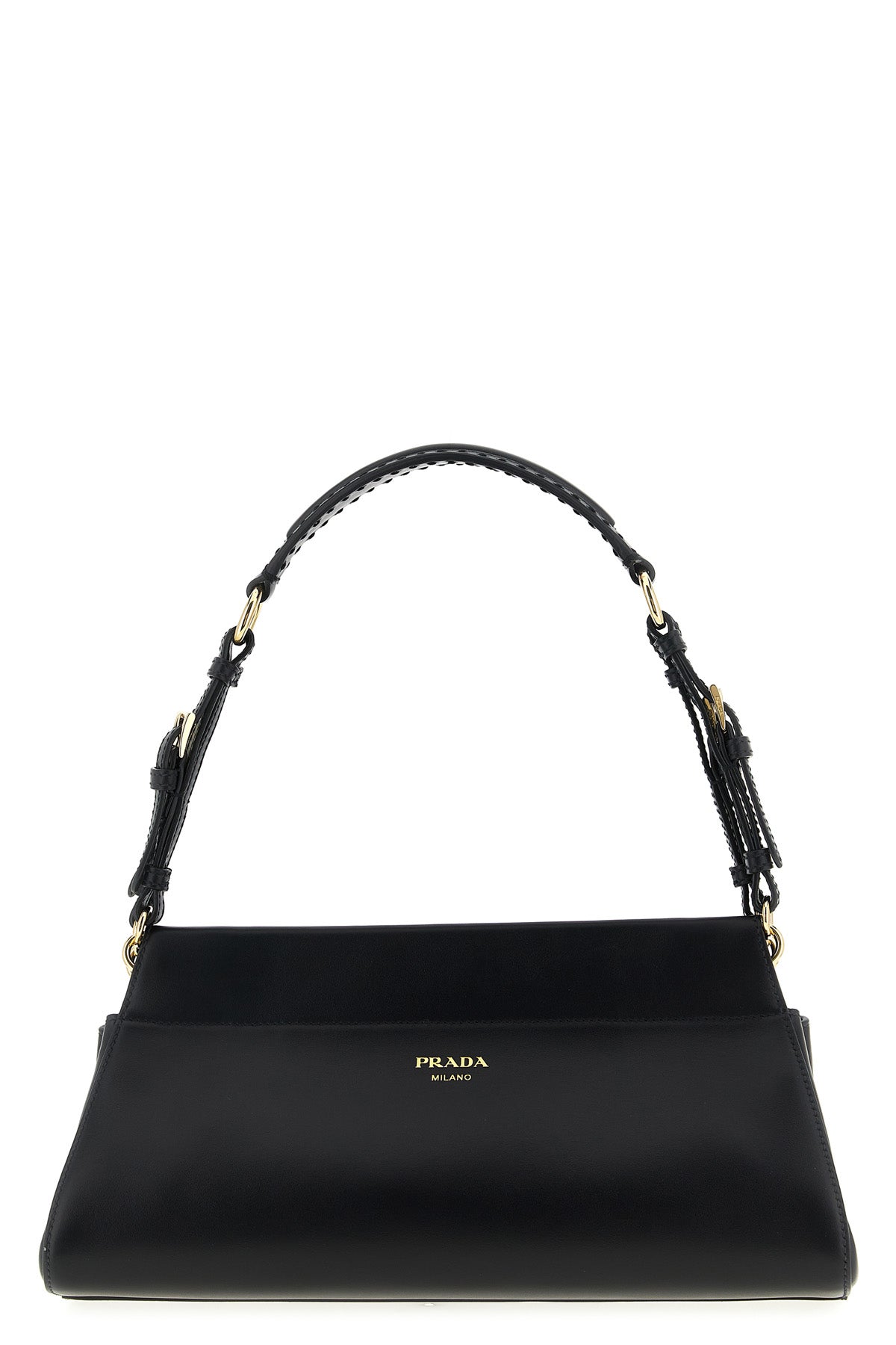 Sac bandoulière en cuir nappa, logo embossé sur le devant, fermeture magnétique, poignée fixe.