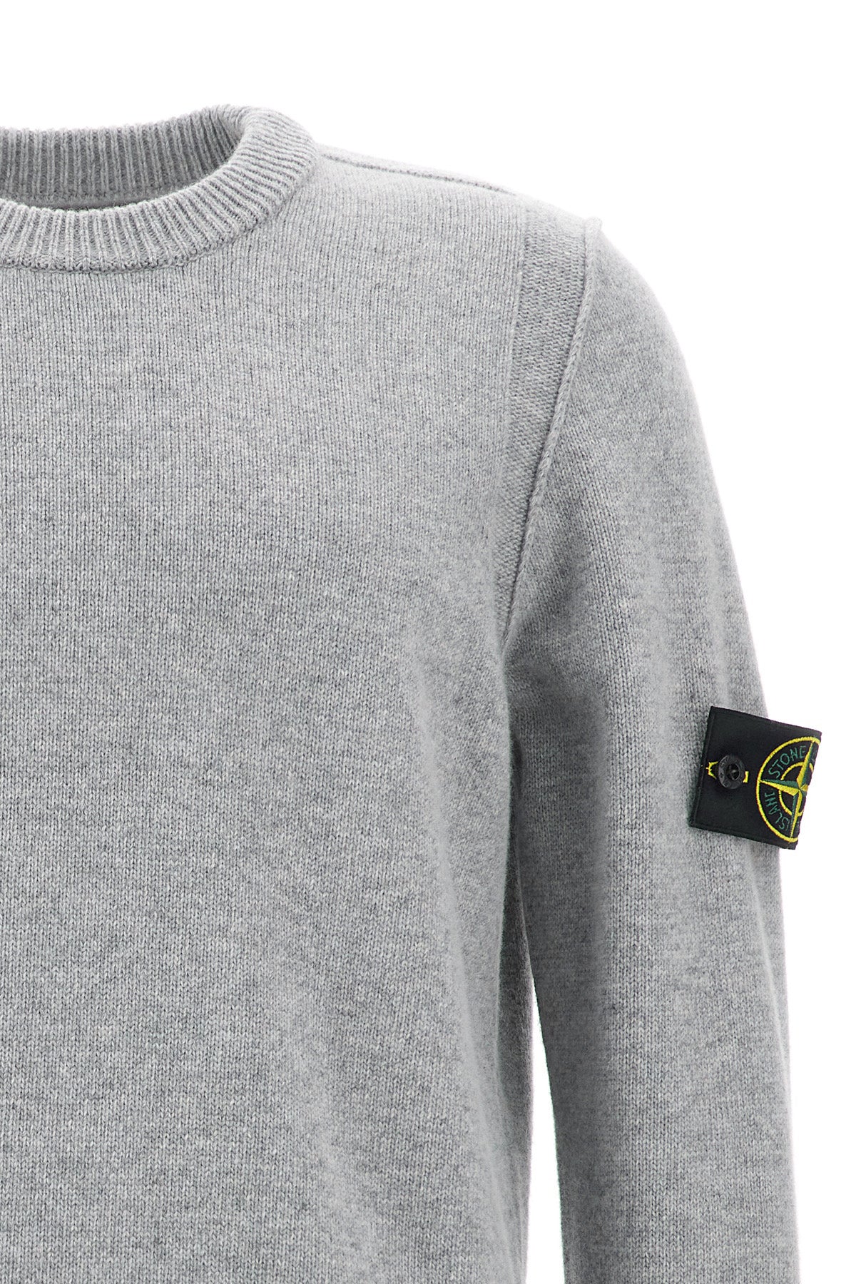 Pull ras du cou en laine mélangée, manches longues à poignets boutonnés et écusson logo.
