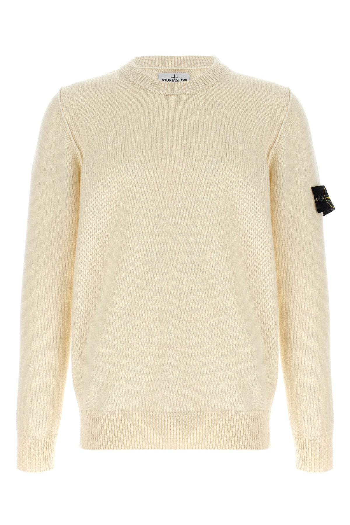 Pull ras du cou en laine mélangée, manches longues à poignets boutonnés et écusson logo.