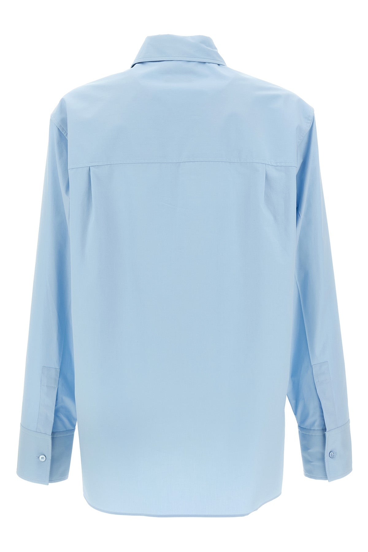Chemise en popeline de coton avec logo en relief sur le devant, fermeture boutonnée, manches longues à poignets et épaules tombantes.