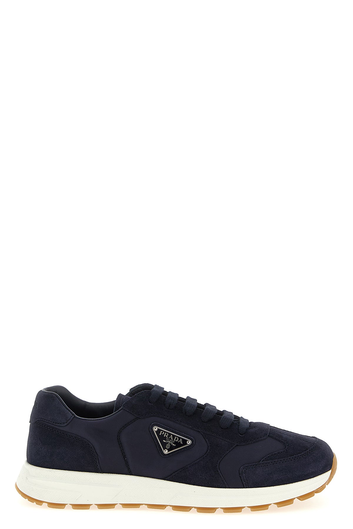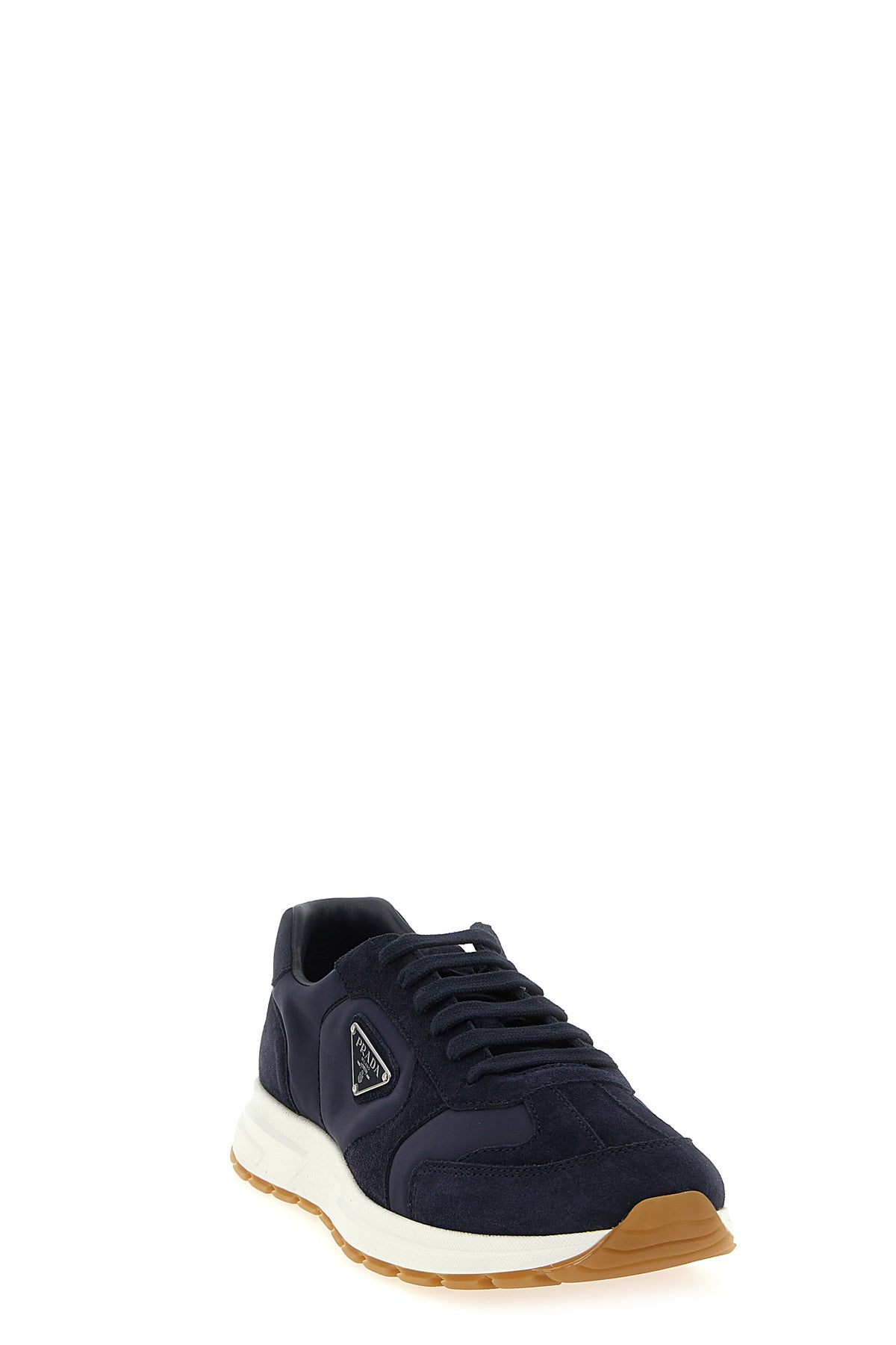 Baskets Prax 2.0 en Re-Nylon et daim, logo triangulaire en métal émaillé sur le côté, fermeture à lacets, semelle en caoutchouc.