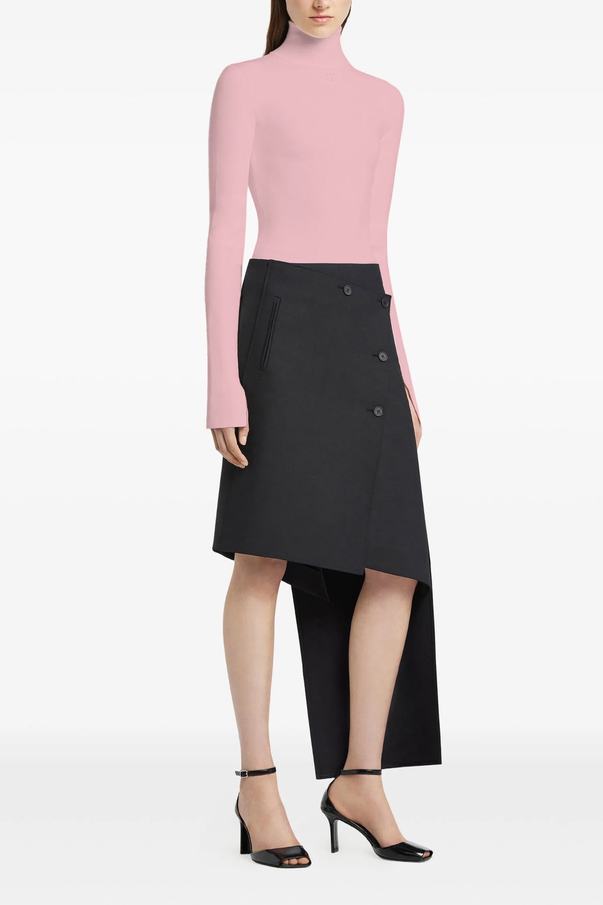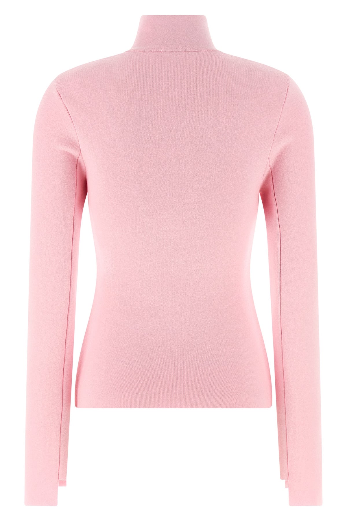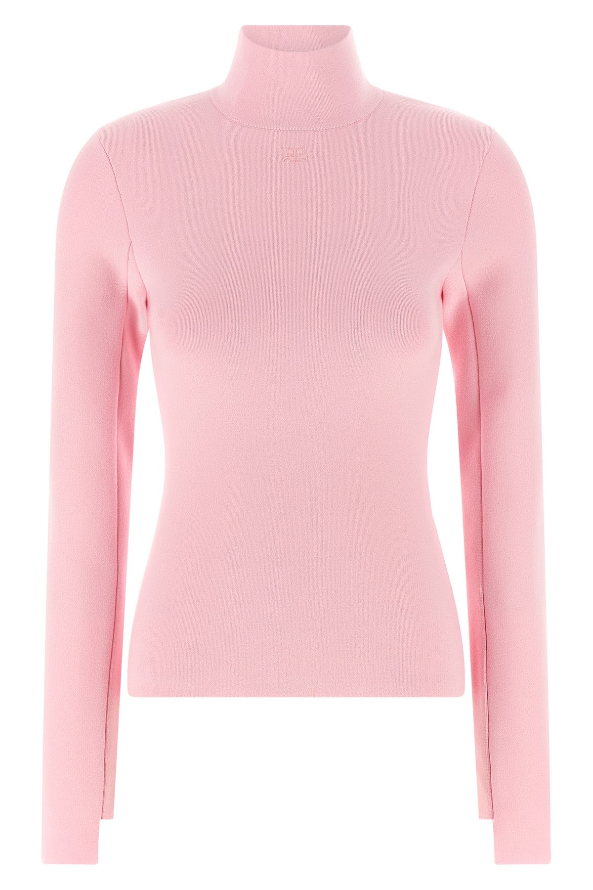 Pull en viscose interlock, logo brodé ton sur ton sur le devant, col montant, manches longues.