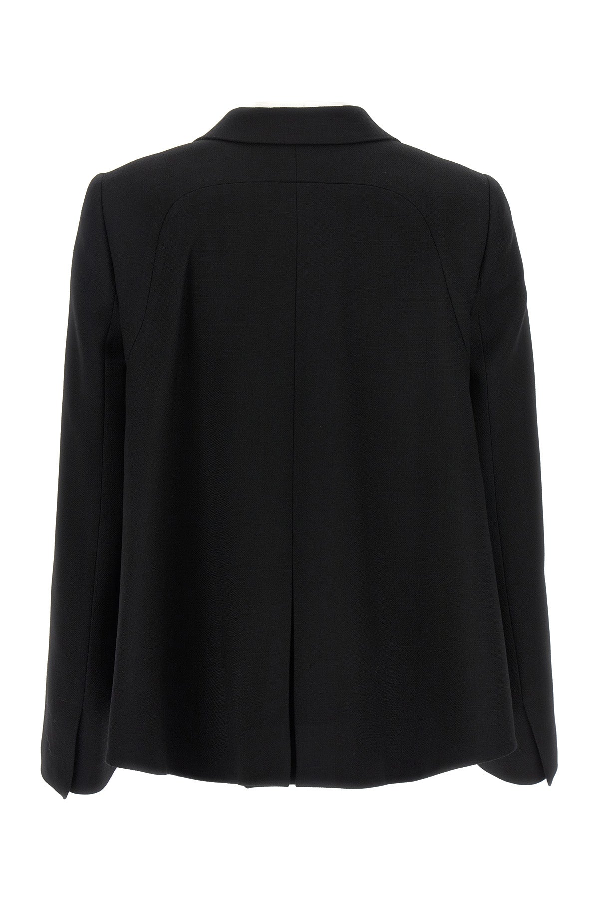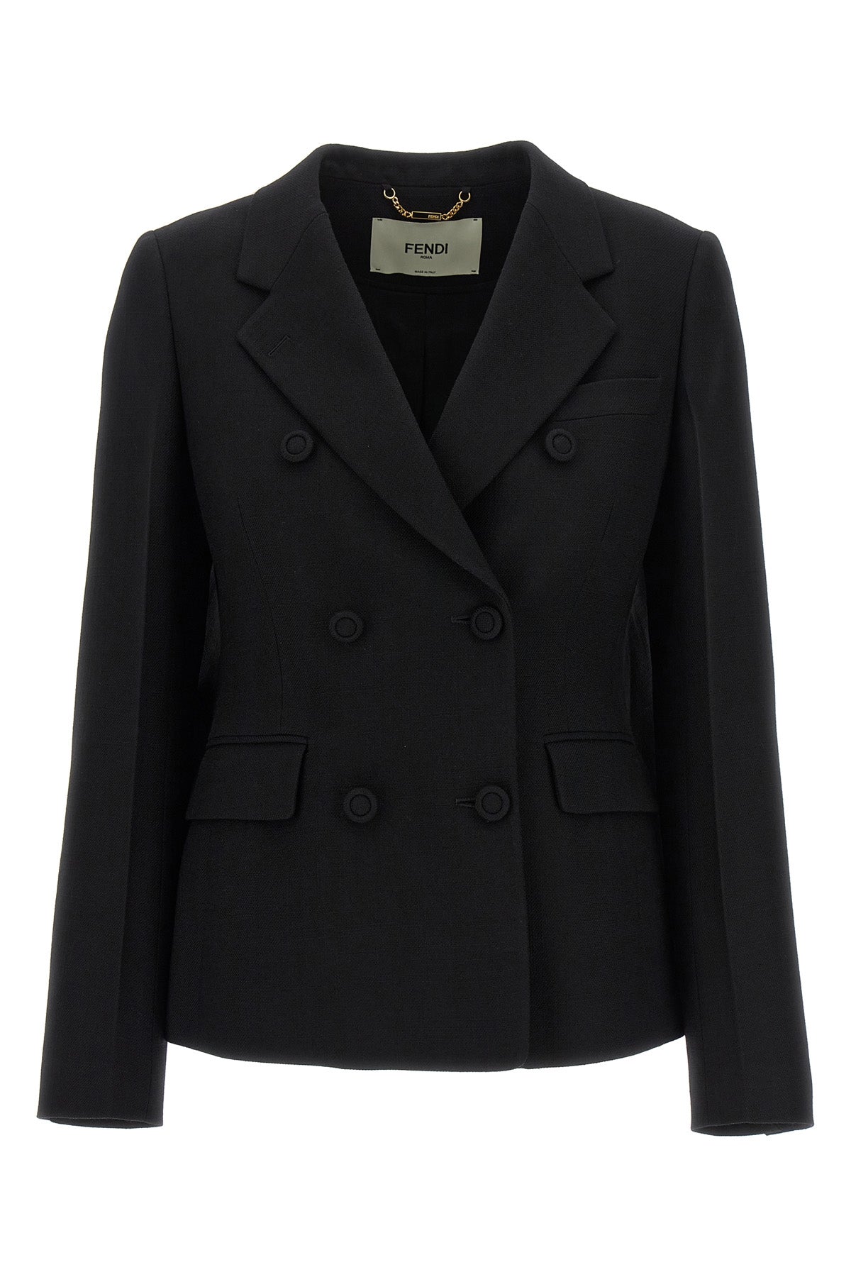 Blazer croisé en laine, coupe cintrée à la taille, fermeture boutonnée, poches à rabat, revers pointus.