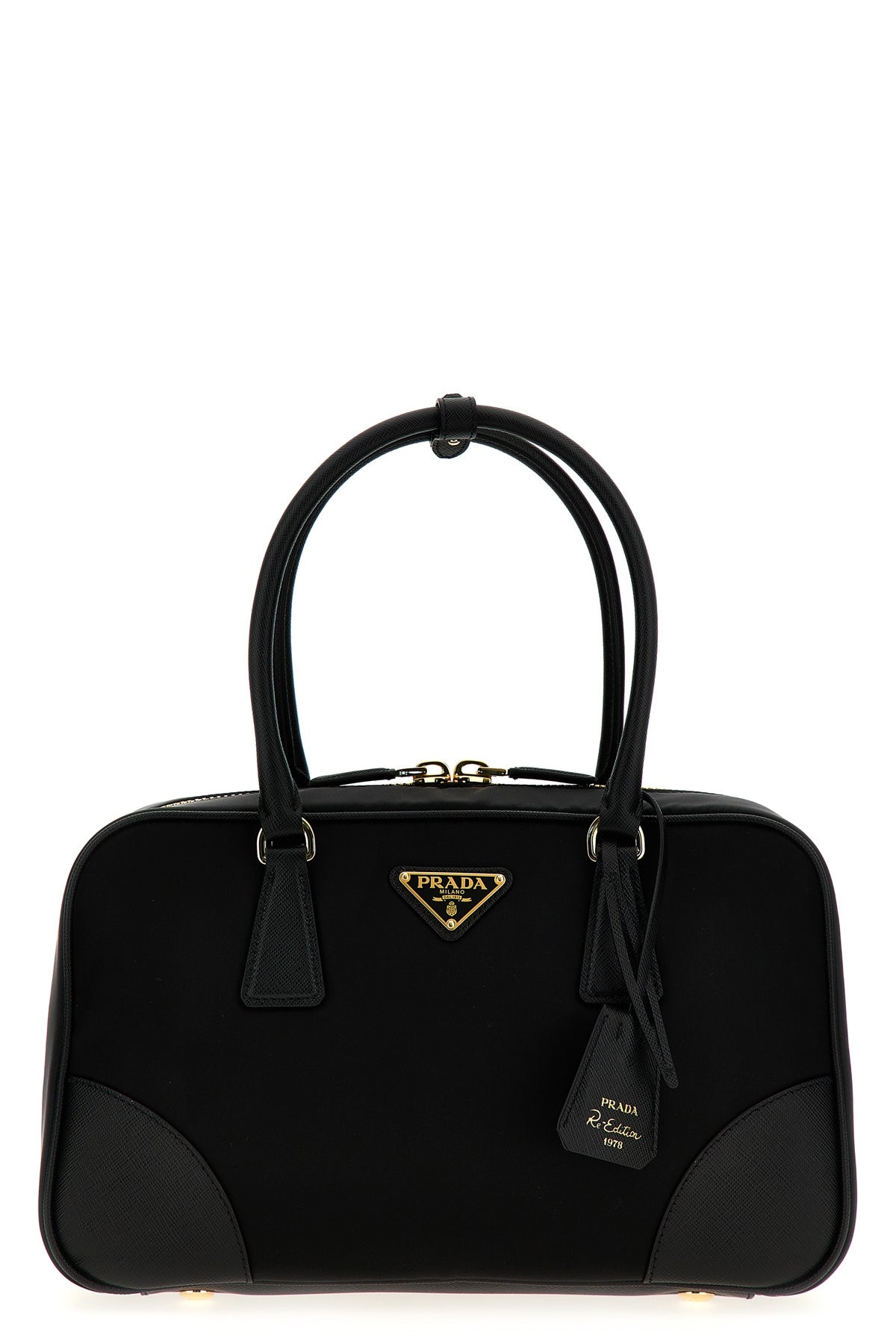Sac à main Bauletto Réédition 1978, double anse, fermeture zippée, bandoulière amovible, logo triangulaire en métal émaillé, porte-clés Réédition amovible en cuir.