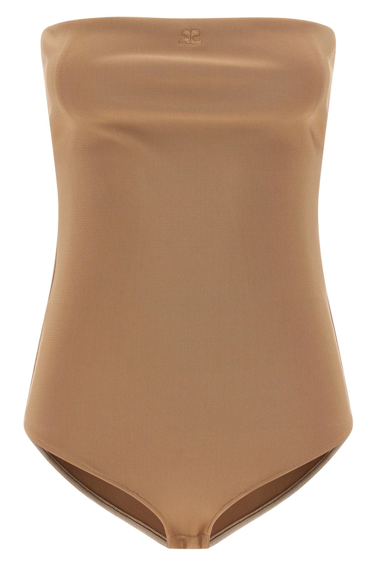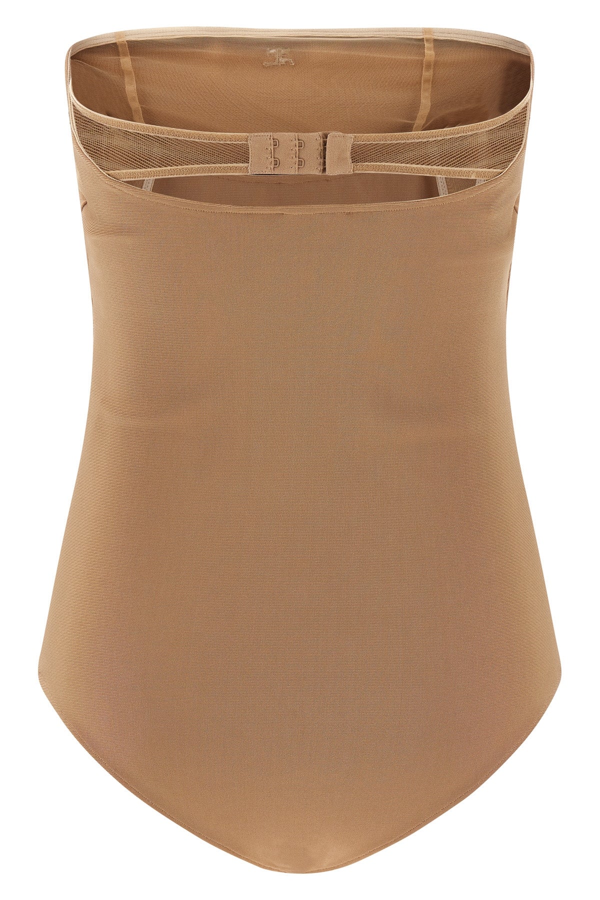 Body en jersey stretch viscose, style épaules dénudées inspiré de la lingerie, broderie logo ton sur ton sur le devant, sans manches, brides latérales, fermeture à crochet intérieure, boutons-pression à l'ourlet.