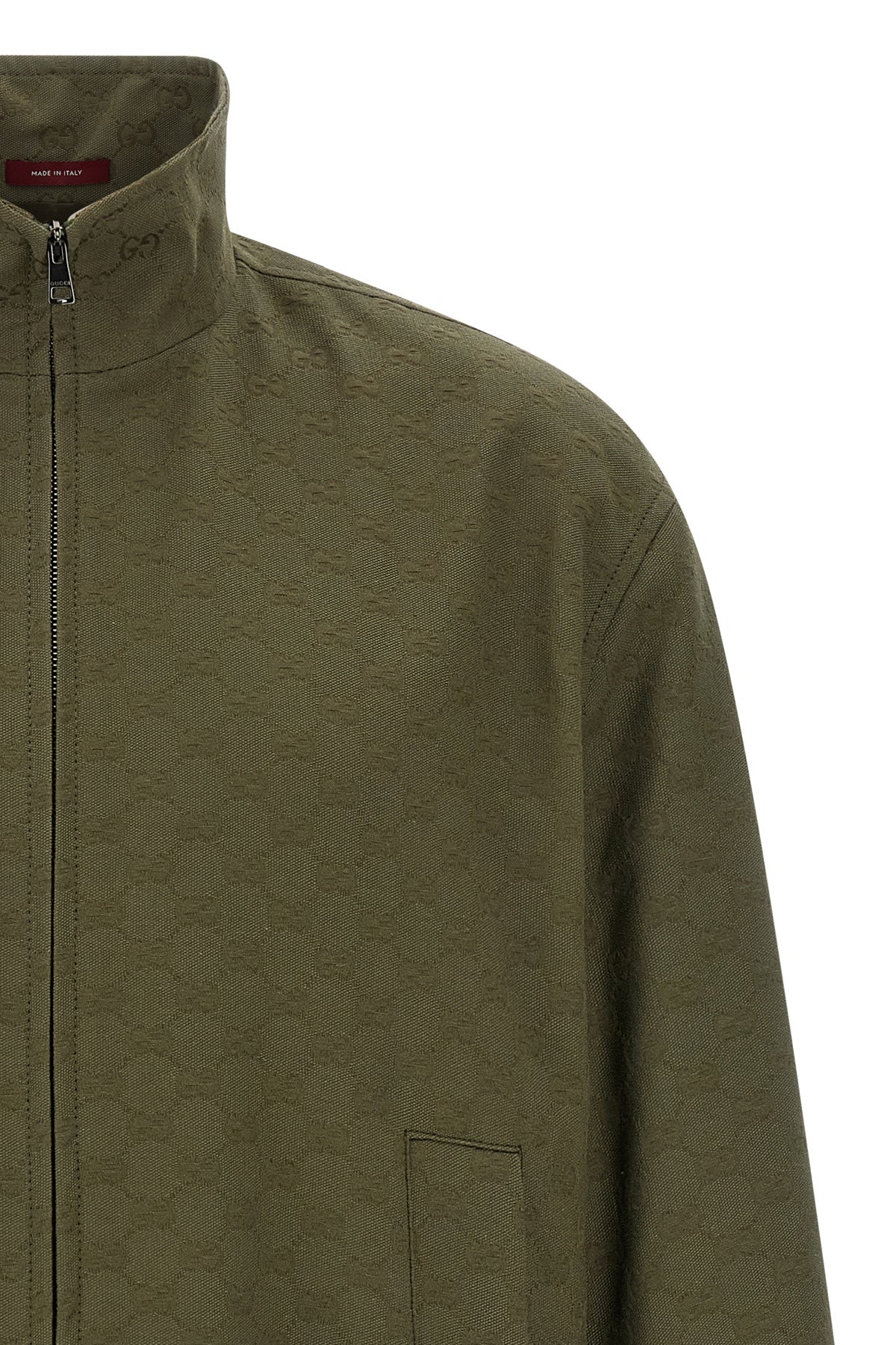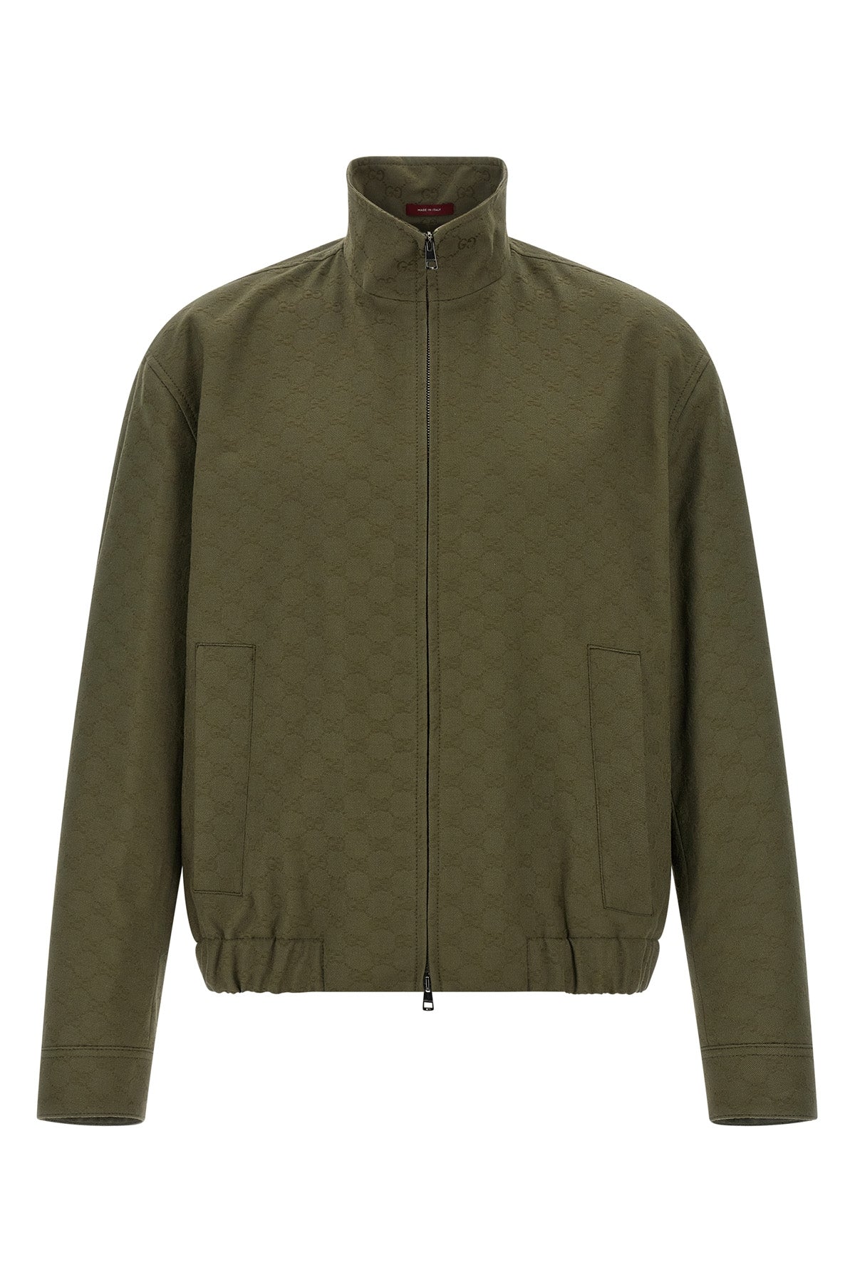 Blouson aviateur en tissu monogrammé GG, fermeture éclair sur le devant, col montant, poches, manches longues avec poignets et épaules tombantes, ourlet élastique, doublure.