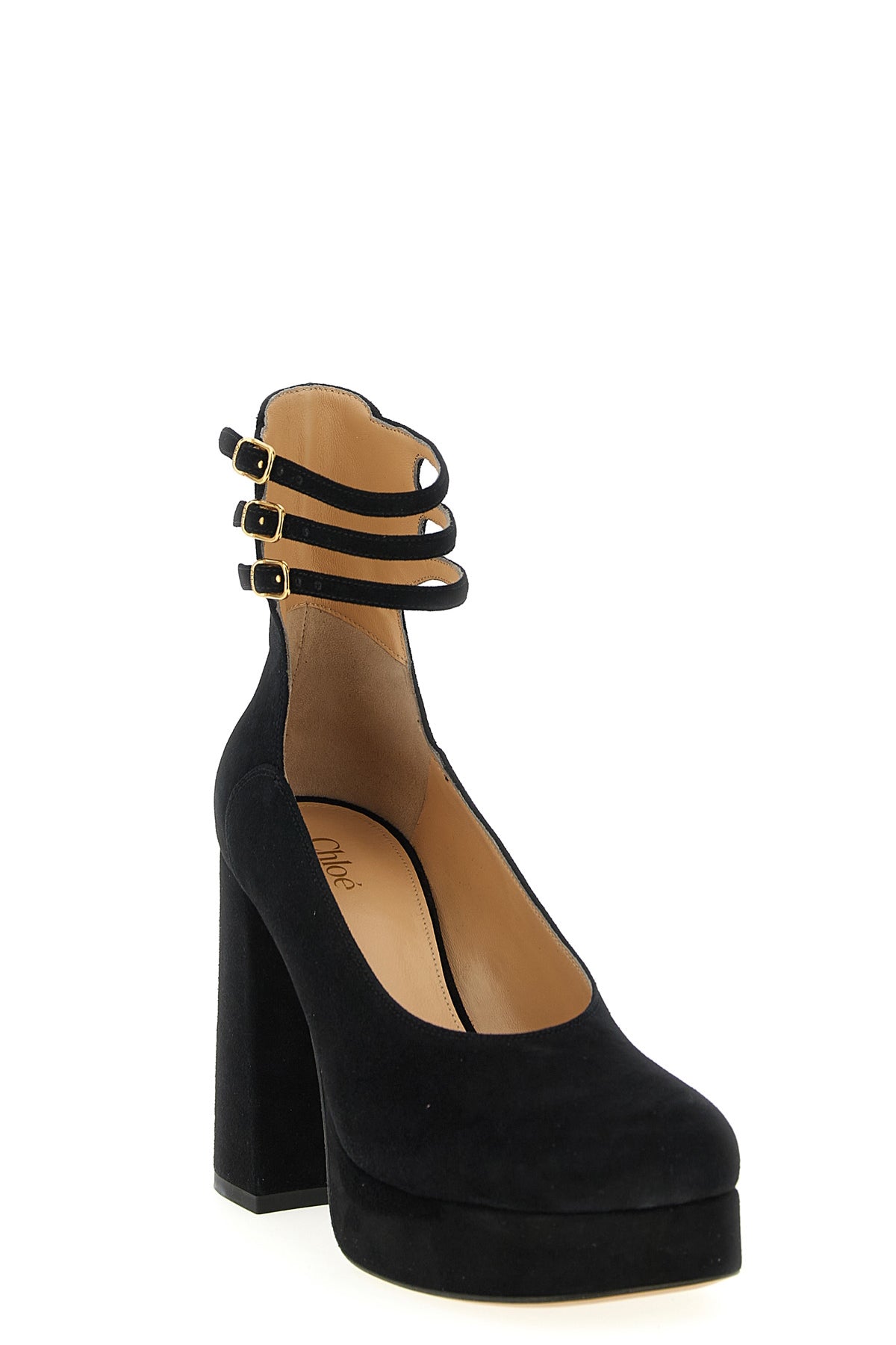 Escarpins Loti en daim à bout rond, triple bride de cheville réglable, talon épais et semelle en caoutchouc.