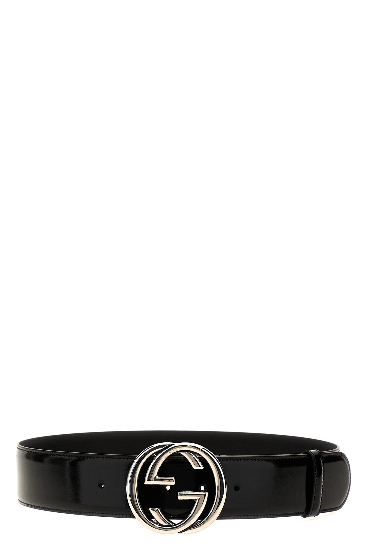 Ceinture en cuir verni, boucle métallique ' Incrocio Gg '.