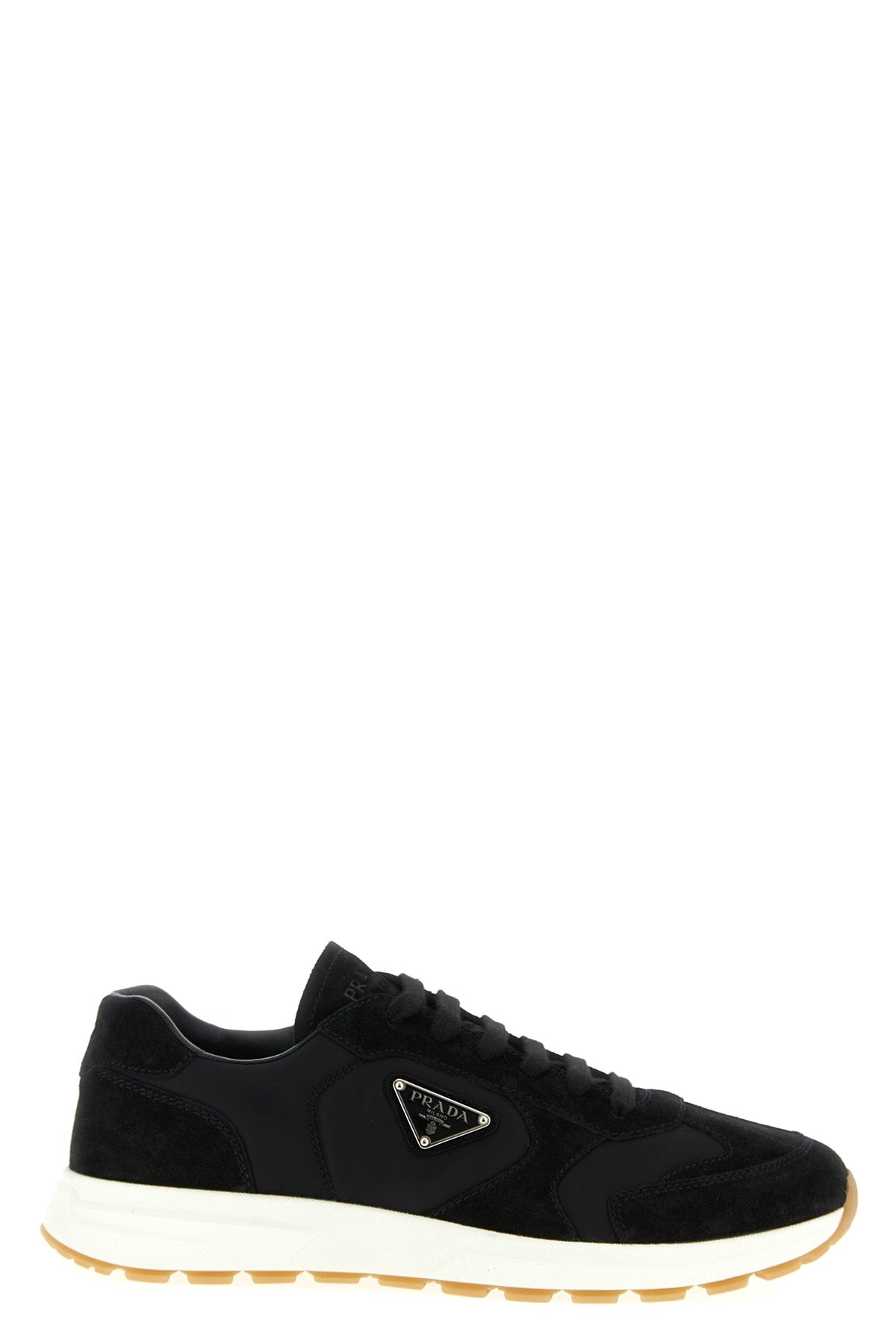 Baskets Prax 2.0 en Re-Nylon et daim, logo triangulaire en métal émaillé sur le côté, fermeture à lacets, semelle en caoutchouc.