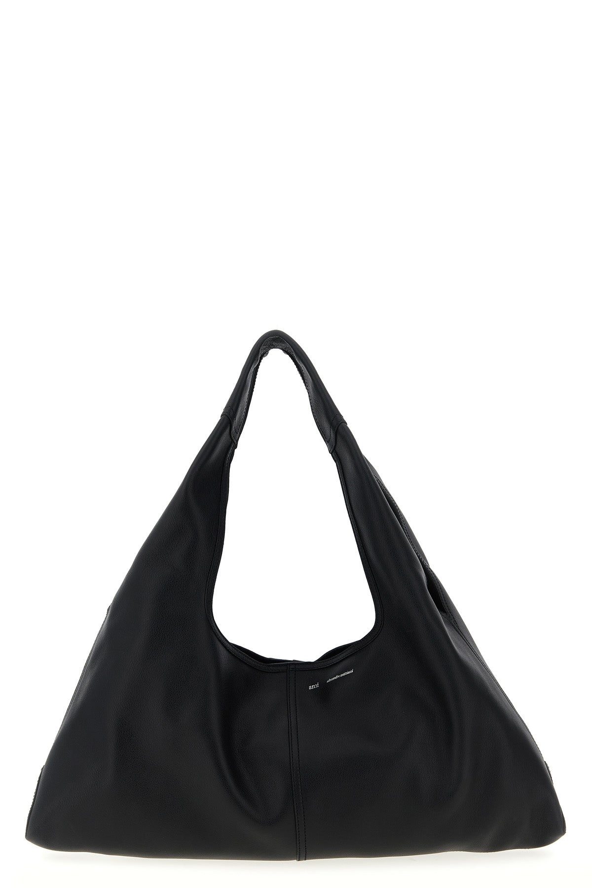 Sac bandoulière en cuir Etienne avec logo embossé sur le devant, fermeture magnétique et double poignée fixe.