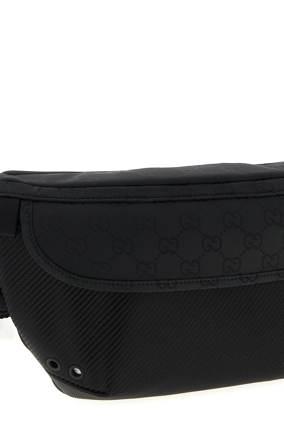 Sac banane Gucci Nexus grand format en nylon GG avec devant moleté, fermeture à rabat avec fermeture éclair en dessous, détail ruban Web, bandoulière rembourrée réglable avec fermeture Tuc.