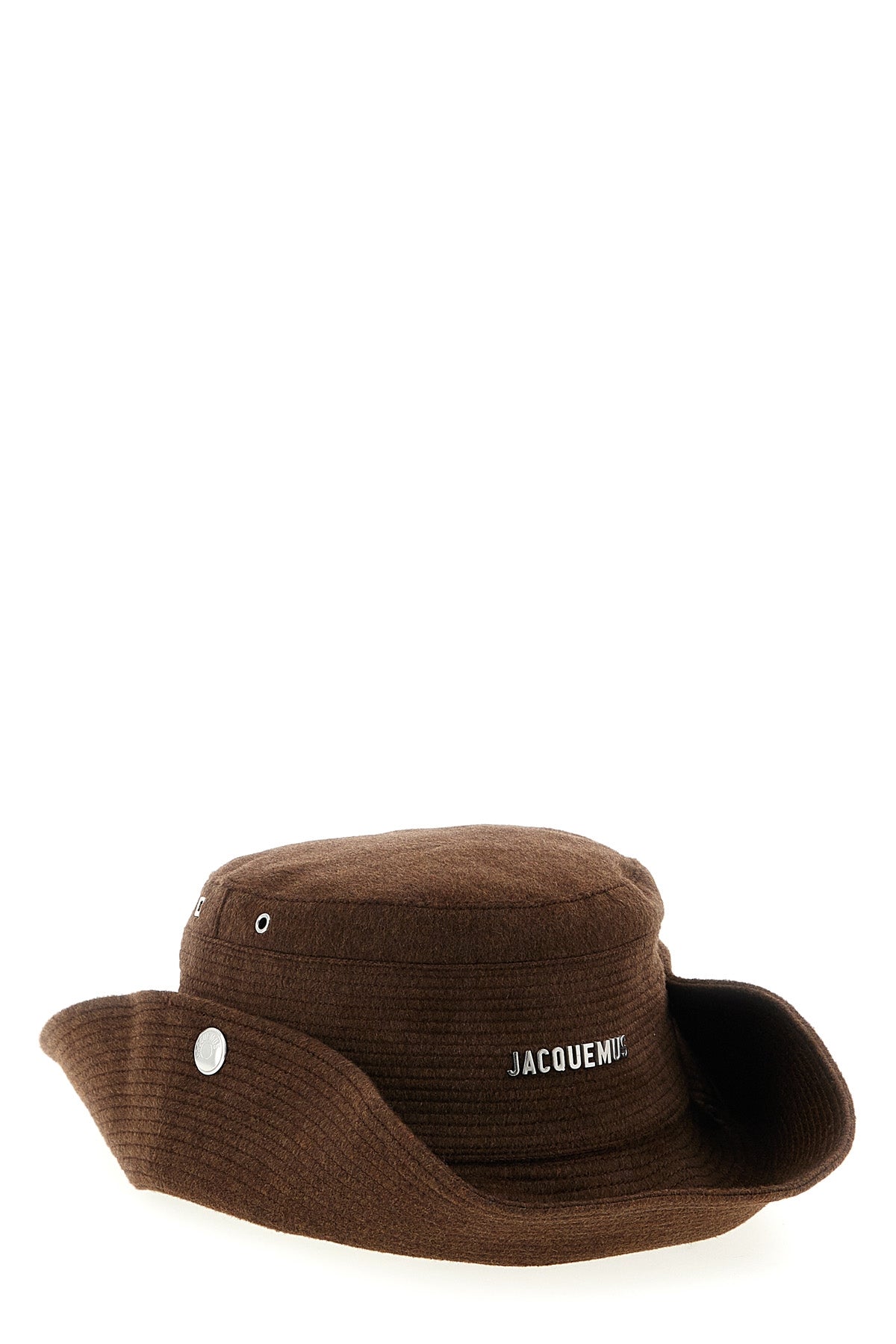Bob De-Nîmes' Bob en laine vierge mélangée avec coutures côtelées, modèle pêcheur, logo en lettres métalliques sur le devant, cordon de serrage réglable à la jugulaire.