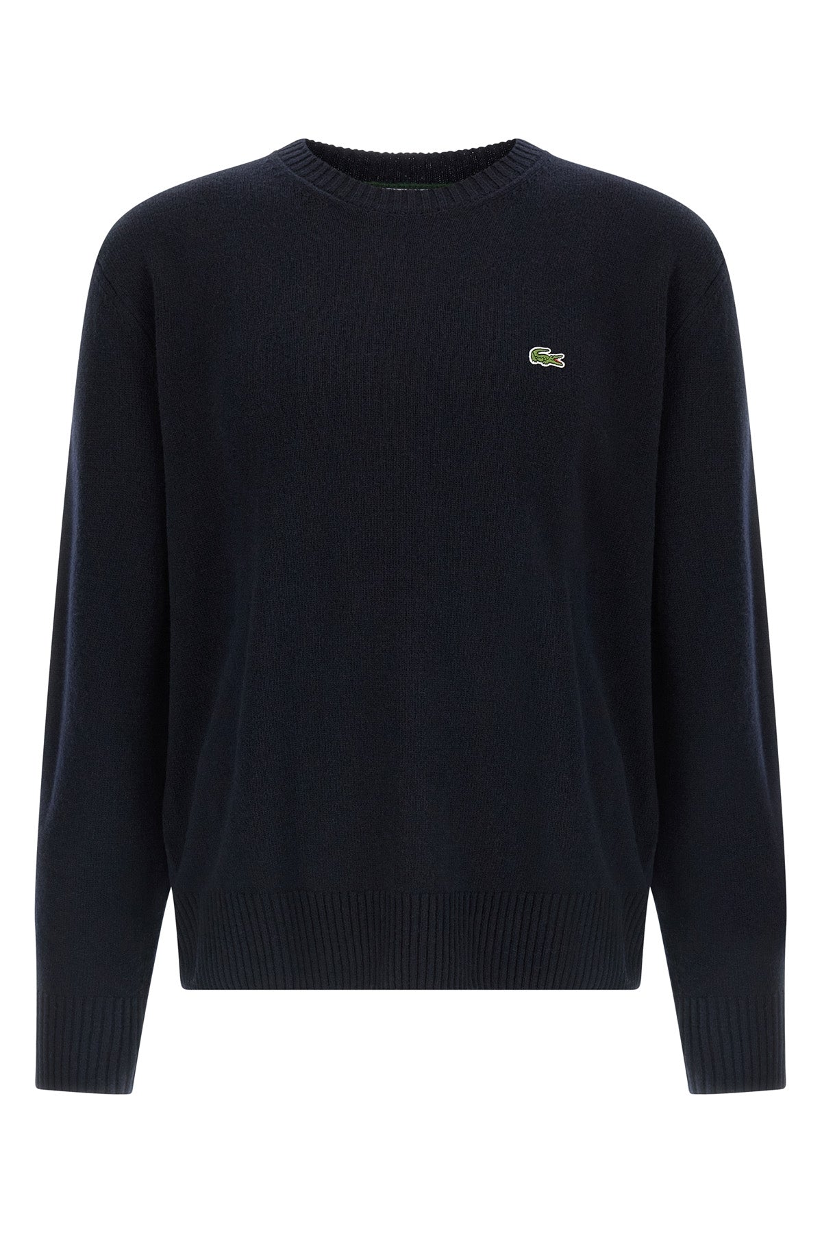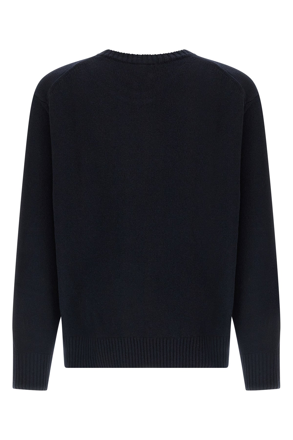 Pull en jersey de laine cardée avec écusson logo sur le devant, col rond, manches longues avec poignets et finition pelote basse.