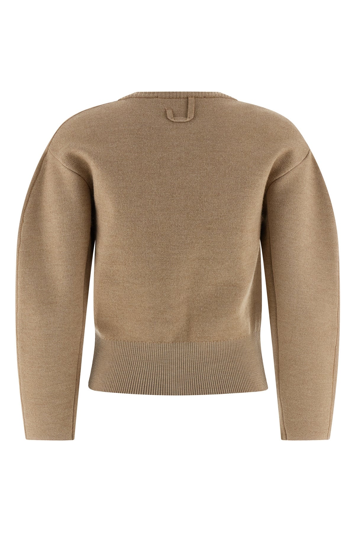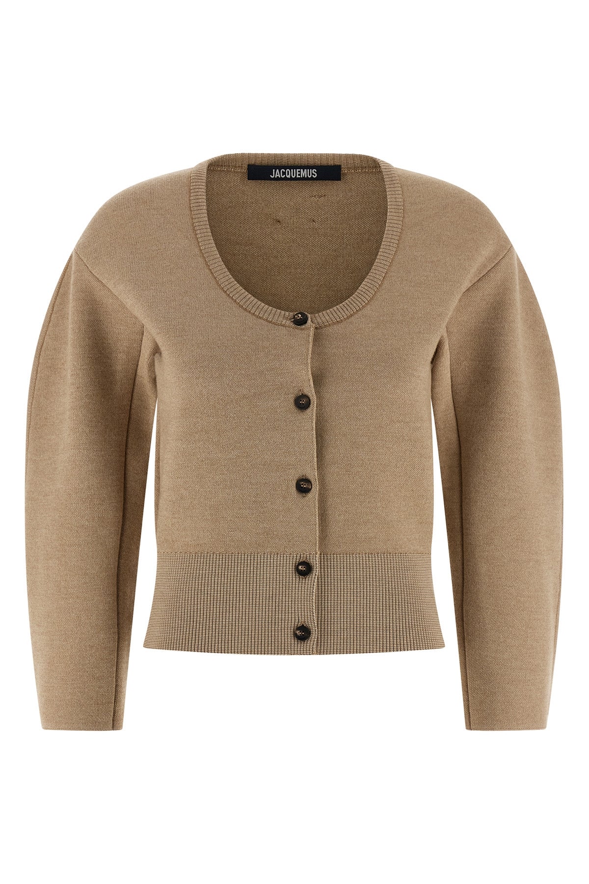 Gilet Doppio' Cardigan en maille épaisse mélangée de laine mérinos, large encolure ronde et fermeture boutonnée sur le devant, manches longues à la coupe arrondie et épaules tombantes.