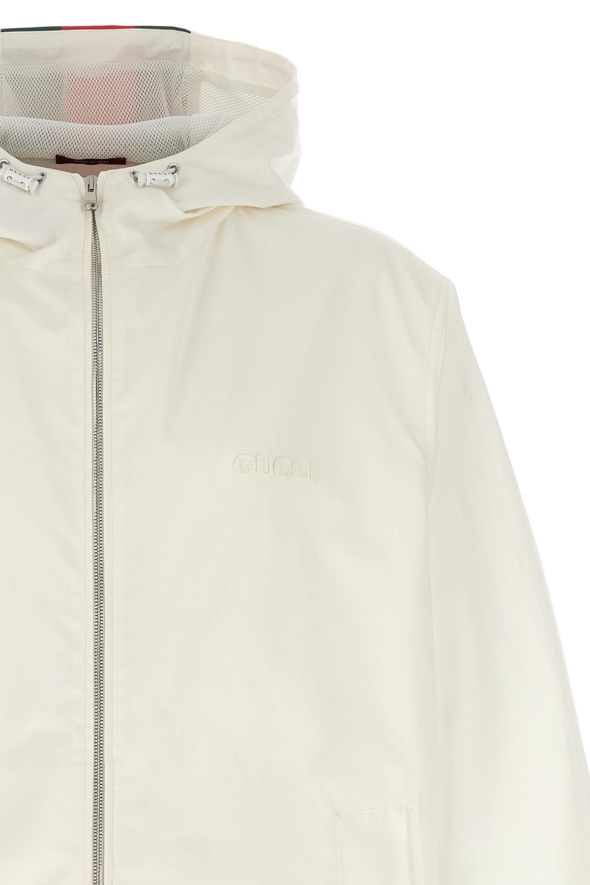 Veste en coton déperlant avec capuche à cordon de serrage, écusson logo ton sur ton sur le devant, poches, manches longues, cordon de serrage à l'ourlet, imprimé. Bande de renfort au dos.
