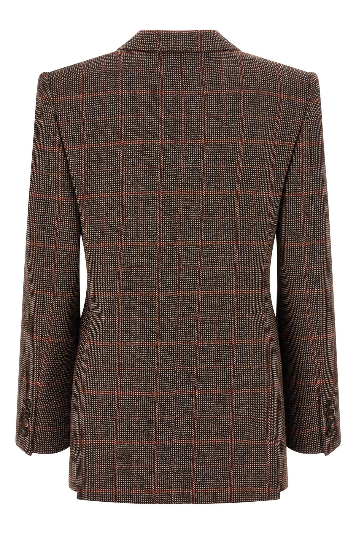Blazer en laine à motif, à simple boutonnage, fermeture boutonnée sur le devant, poches plaquées surdimensionnées, bandoulière structurée à bout léger, revers miroir, fentes au dos, doublure.