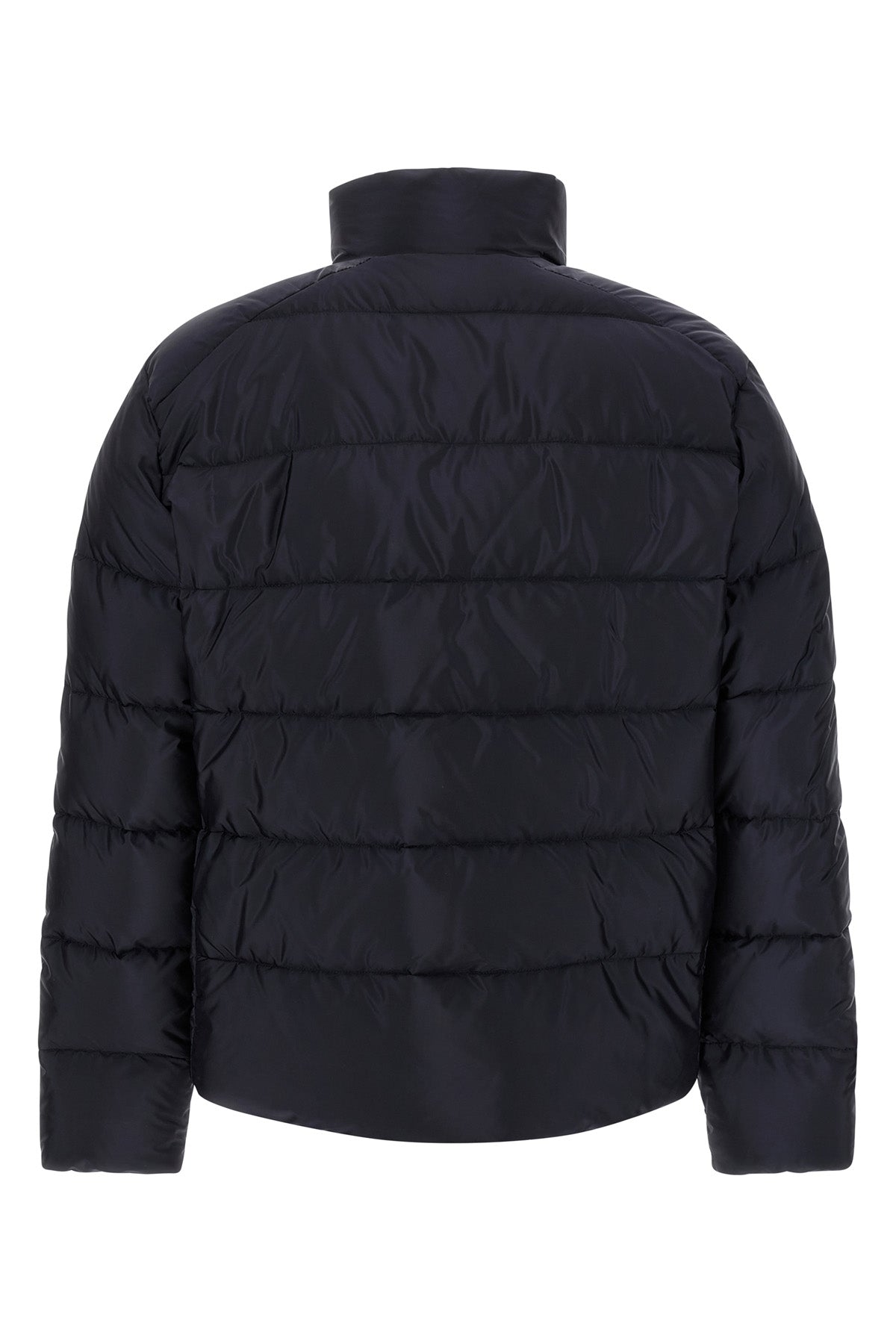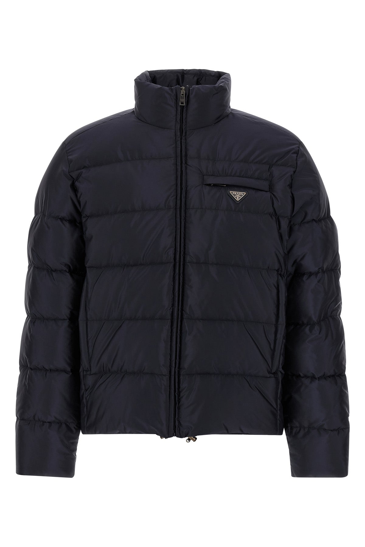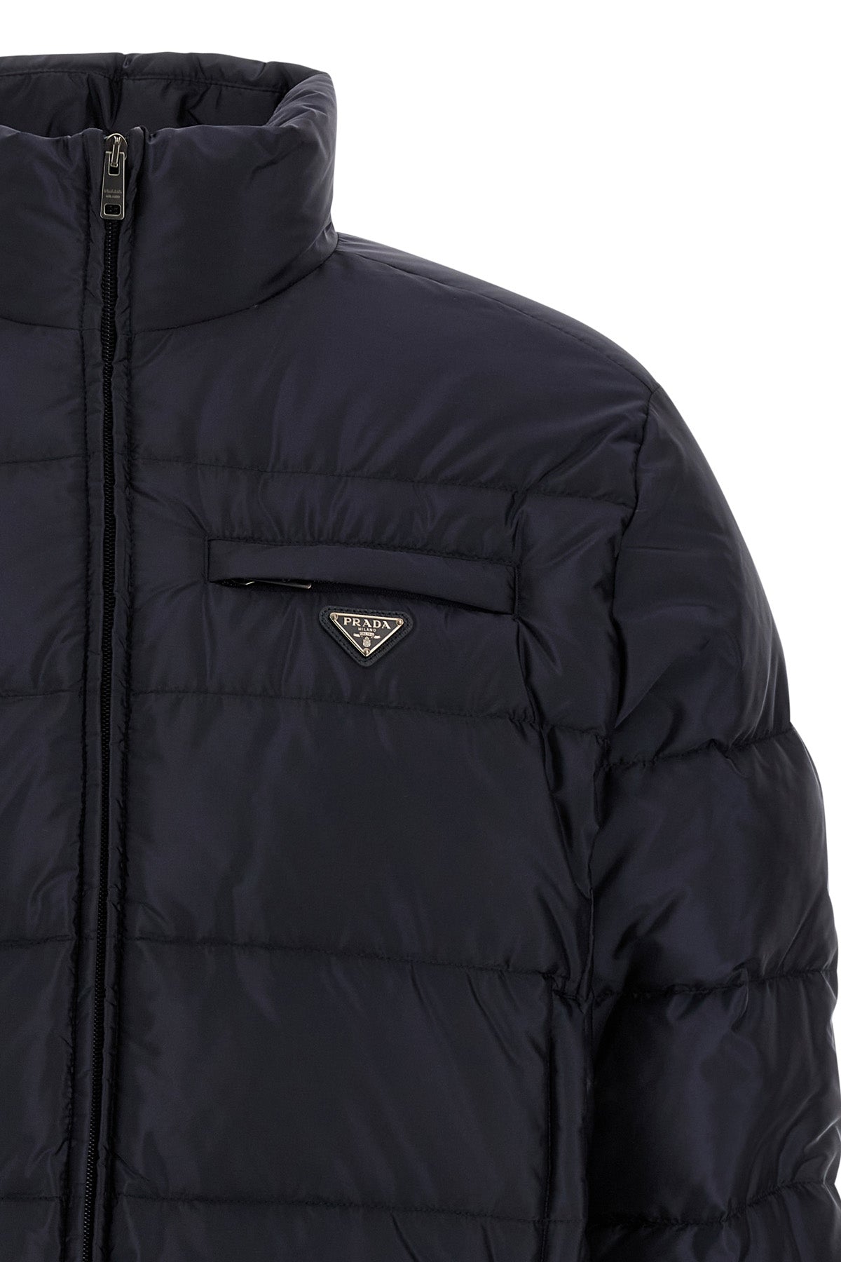 Doudoune matelassée en Re-Nylon avec rembourrage en plumes d'oie, logo triangulaire en métal émaillé, fermeture éclair sur le devant, col montant, poches, manches longues, cordon de serrage à l'ourlet. Durable : ce produit est fabriqué en Re-Nylon, un fil régénéré à partir de plastique recyclé et purifié collecté dans les océans, les filets de pêche et les fibres textiles.