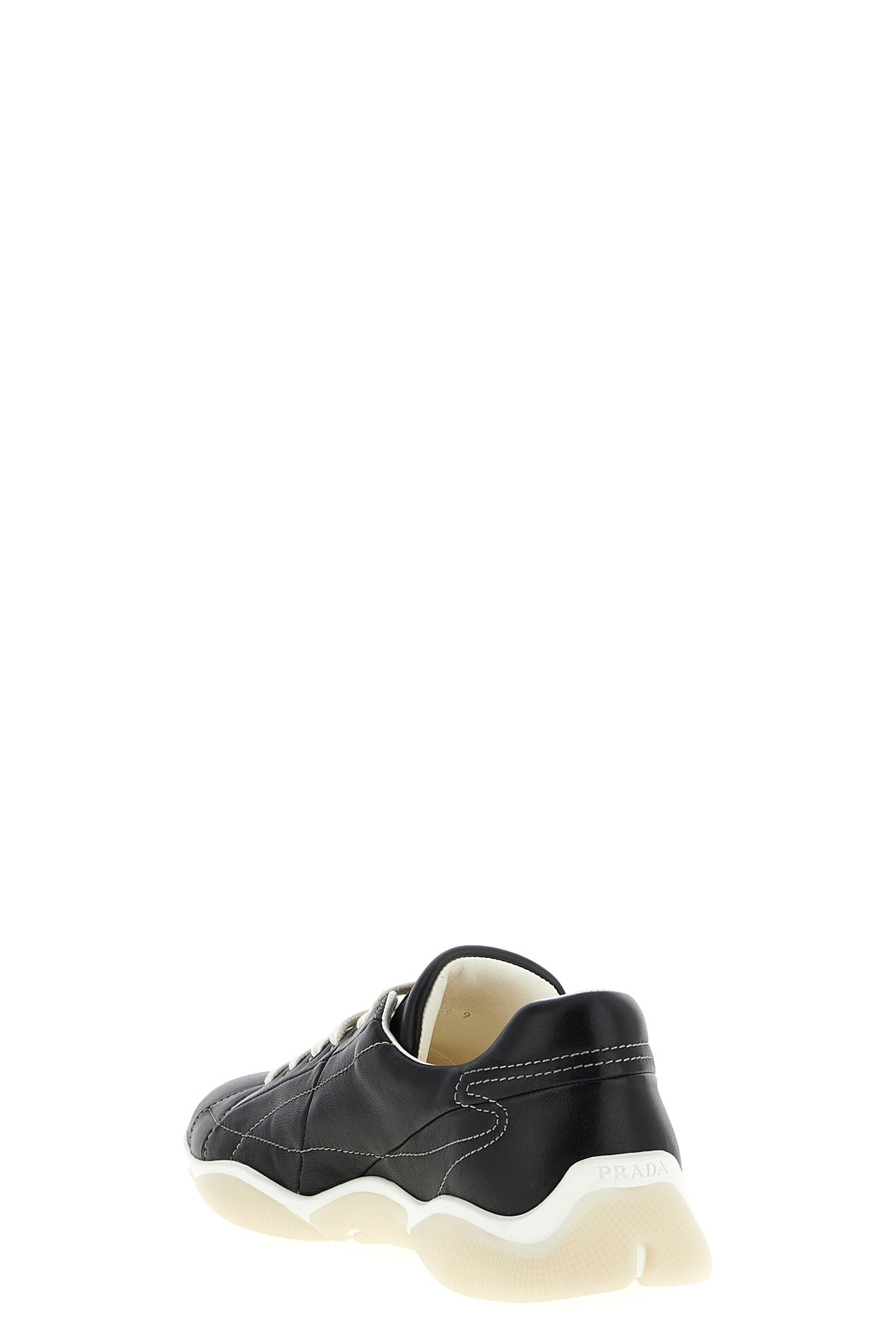 Baskets en cuir Nappa ' Prada Réédition 2001 ' avec surpiqûres contrastées, logo ton sur ton sur la languette et semelle en caoutchouc.