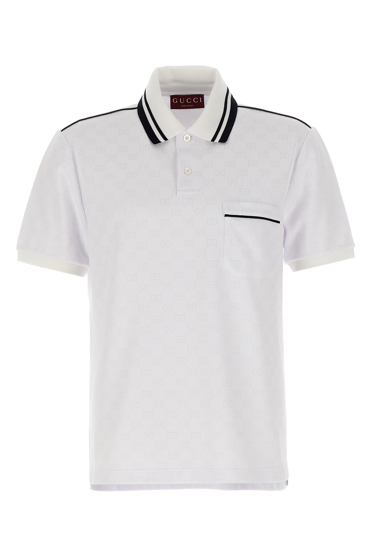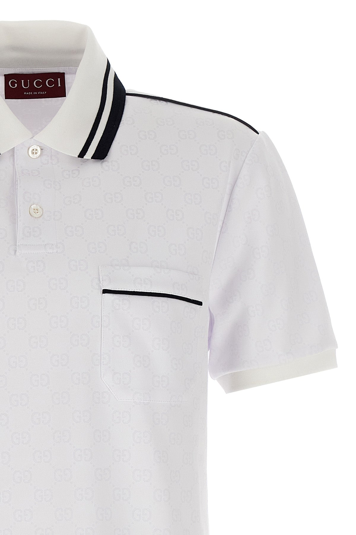 Polo en jersey de nylon et de coton technique à motif jacquard GG avec détails contrastants, col et boutons en coton côtelé, poche poitrine, manches courtes, fentes latérales et ourlet asymétrique.