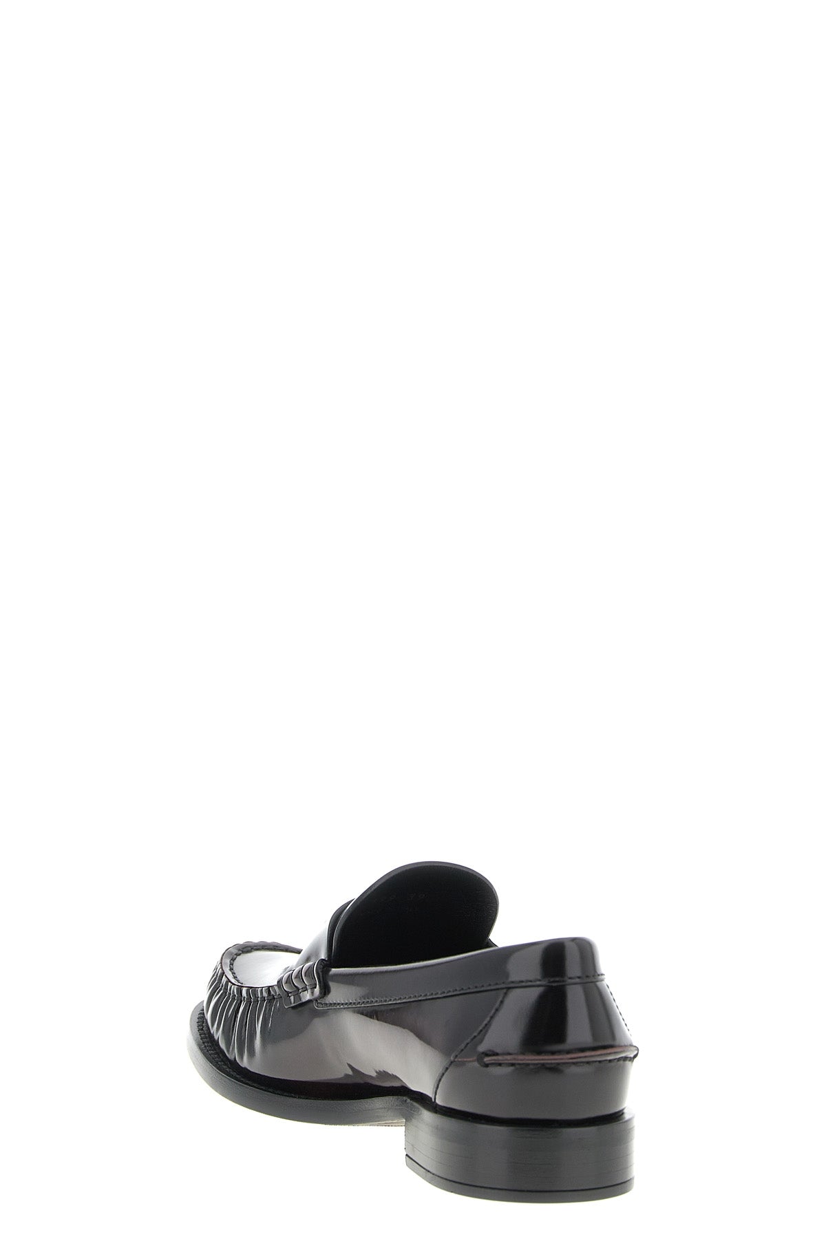Mocassins en cuir brossé avec logo embossé sur le devant, semelle monobloc en caoutchouc avec logo en feu.