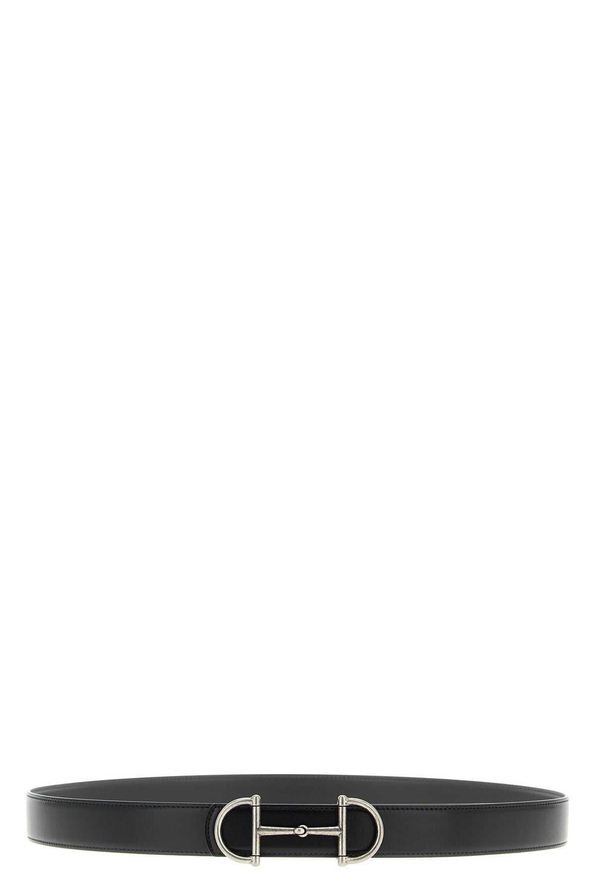 Ceinture réversible en cuir lisse, boucle à ardillon amovible en métal vieilli.