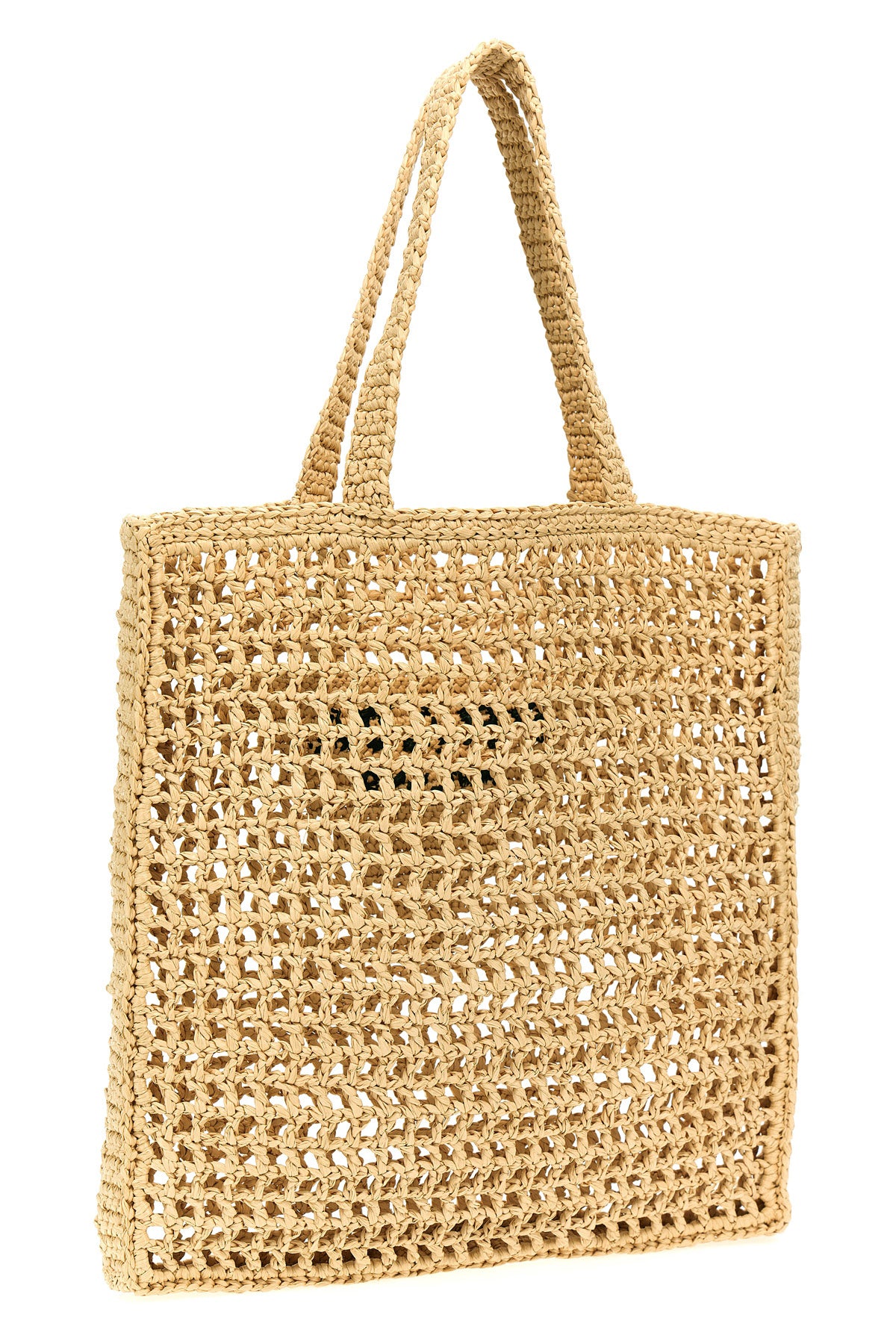 Sac cabas en tissu tissé effet raphia, broderie logo, double anse.
