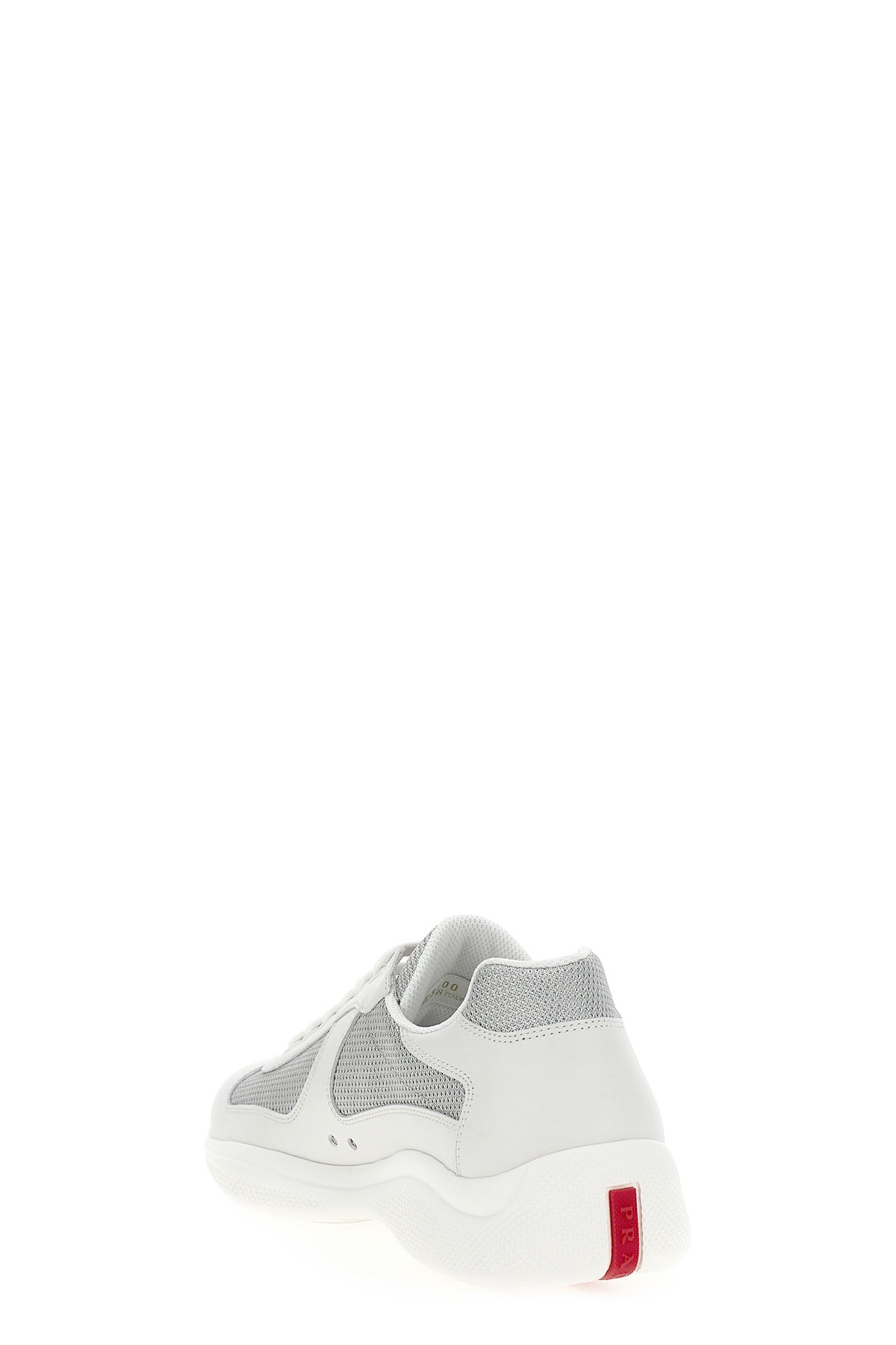 Baskets Prada ' America's Cup ' en cuir et tissu cycliste, modèle bas à lacets, semelle en caoutchouc, logo.
