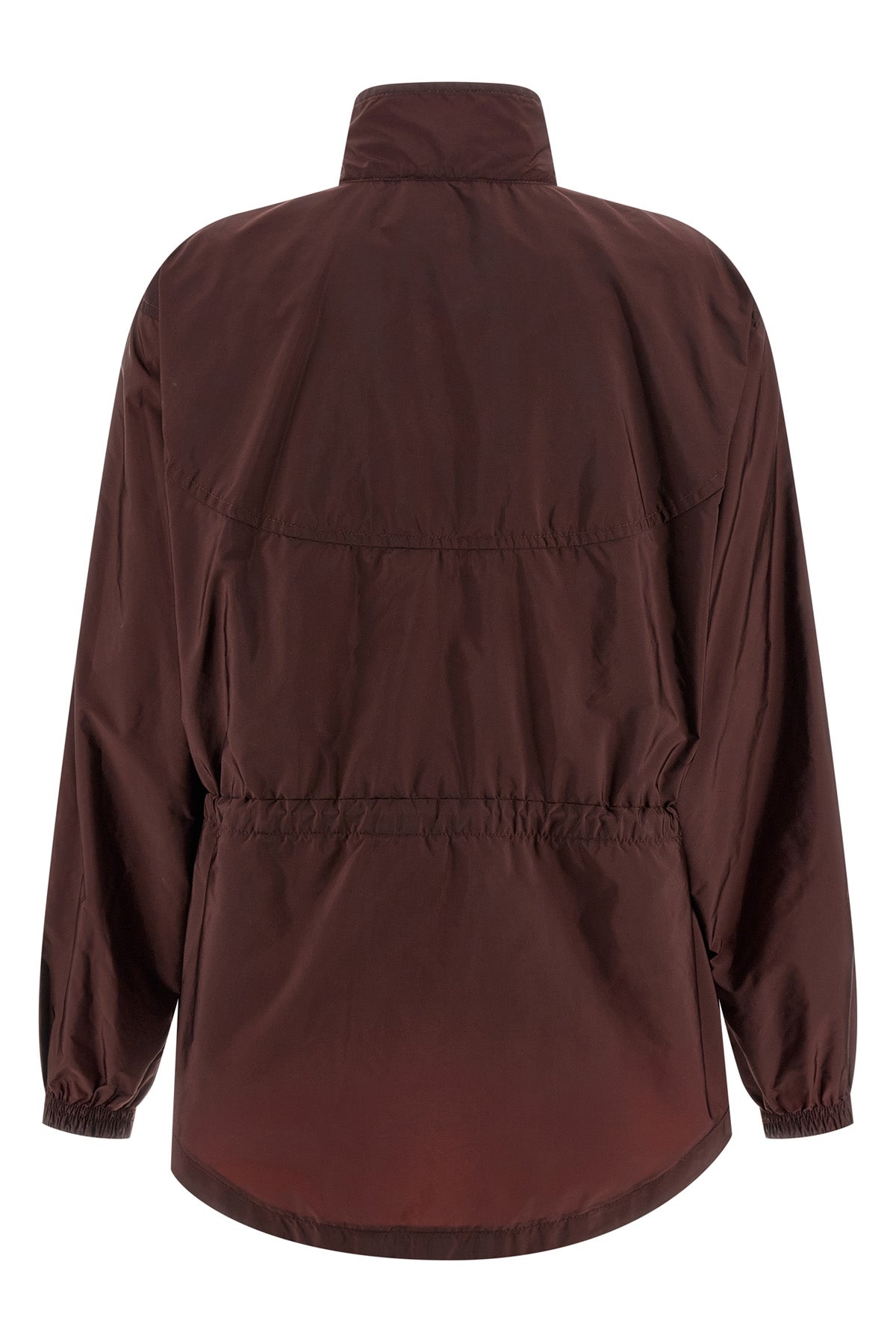 Blouson en Re-Nylon avec logo triangulaire en métal émaillé et fermeture éclair sur le devant, col montant avec intérieur contrastant, poches, cordon de serrage à la taille, manches longues avec poignets élastiqués, non doublé. Durable : Ce produit est fabriqué en Re-Nylon, un fil régénéré à partir de plastique recyclé et purifié collecté dans les océans, les filets de pêche et les fibres textiles.