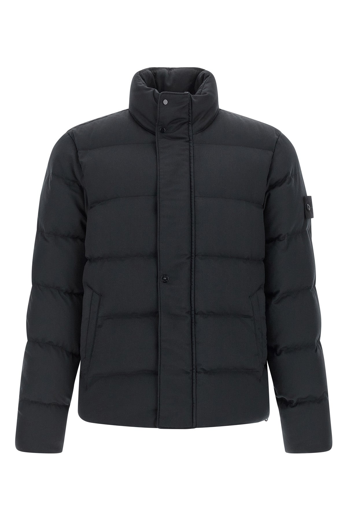 4100100 Doudoune Twill Wool-Tc Ghost Piece en sergé de laine mérinos fine peignée, teinte en pièce avec traitement anti-goutte, matelassée et garnie de duvet d'oie, col montant, fermeture éclair et boutons-pression sur le devant, poches, manches longues avec poignets en tricot côtelé extensible et écusson ' Stone Island Ghost ' ton sur ton appliqué, cordon de serrage au bas de la tête.