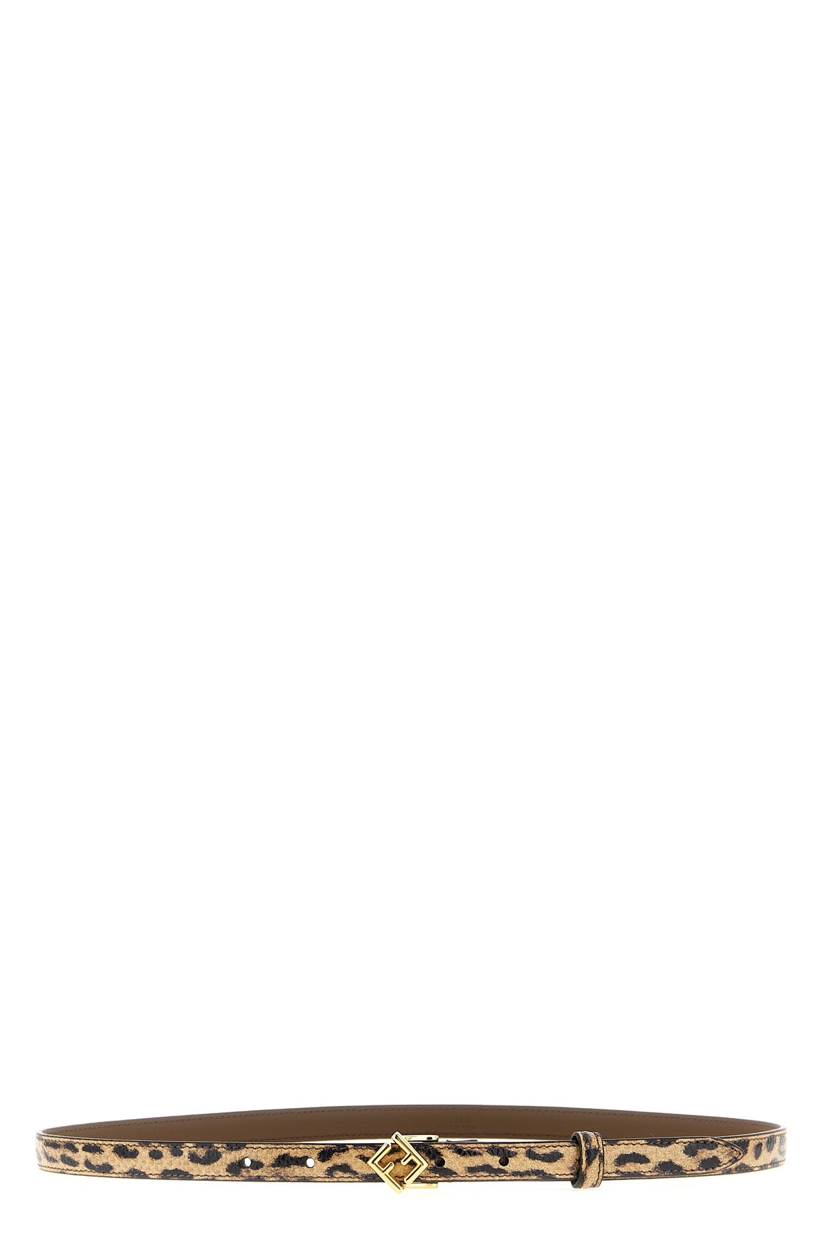 Ceinture en cuir de serpent Karung à imprimé animal de FF Diamonds, fermeture par boutons de manchette métalliques diagonaux FF.