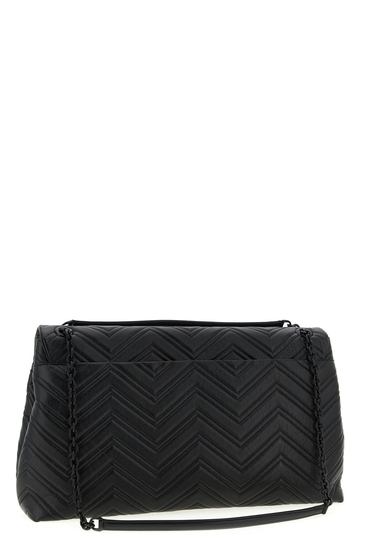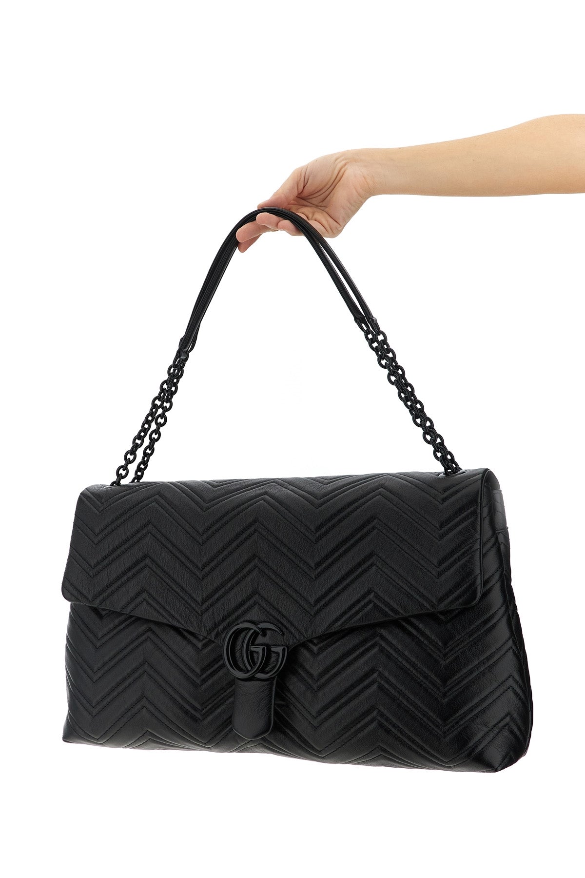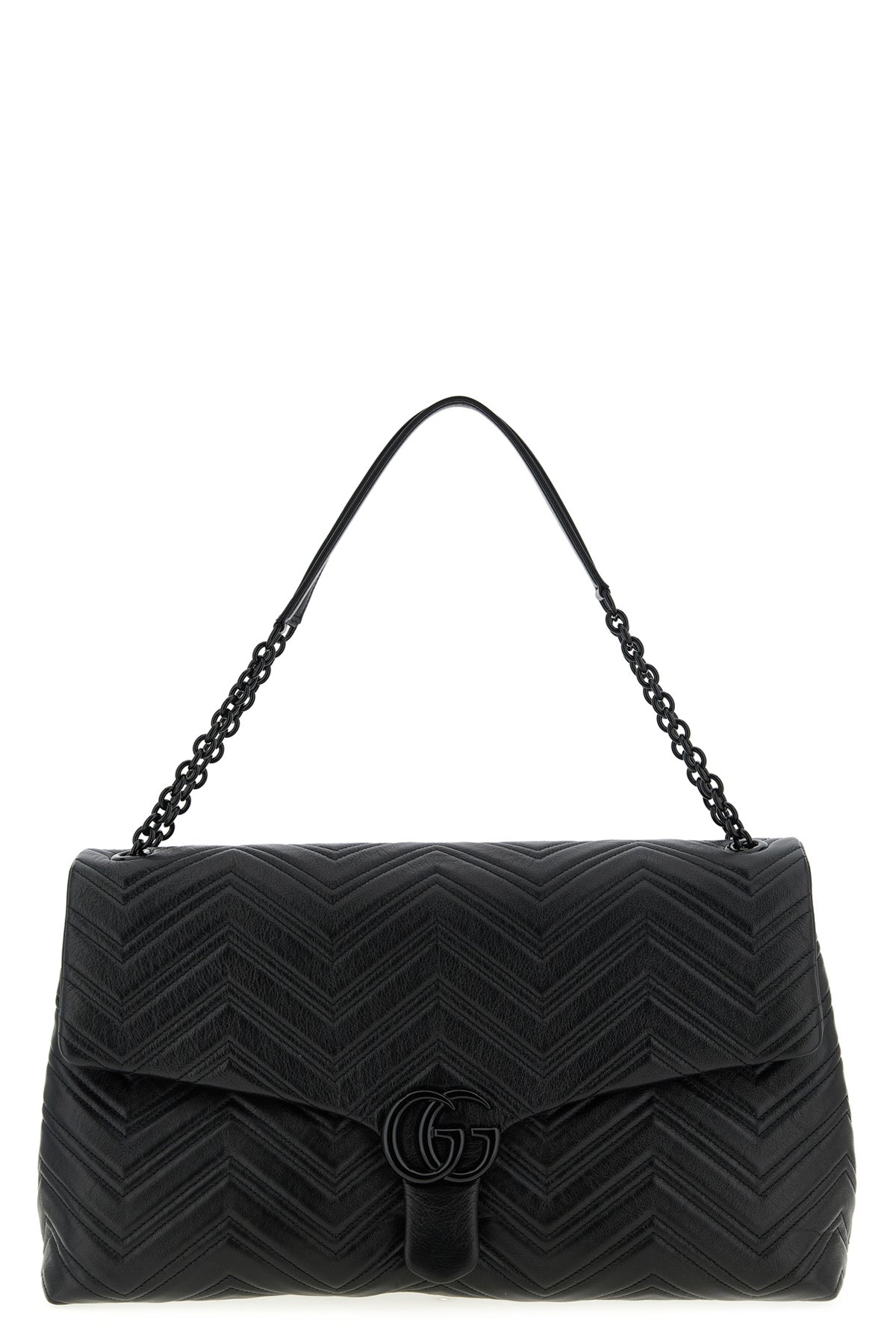 Sac bandoulière Gg Marmont grand format en cuir matelassé à motif chevron, bandoulière coulissante en chaîne émaillée et poignées en cuir.